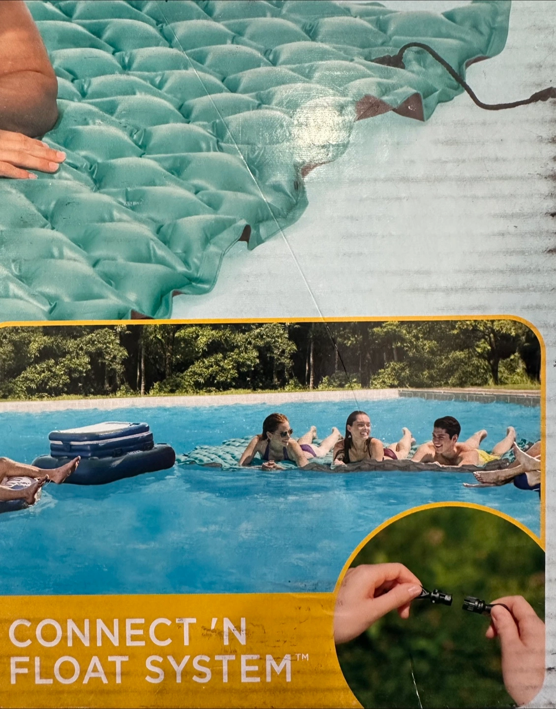 Selling an Intex Giant Floating Mat that's in excellent condition! It features: - Durable 20-gauge vinyl material - 2 air chambers for added safety - Easy-to-use connectors to fasten other Intex floaters - 114 in x 84 in - 3-Person capacity - Folds small for storage - 4 Connectors (one on each corner) Perfect for use on or off the water!