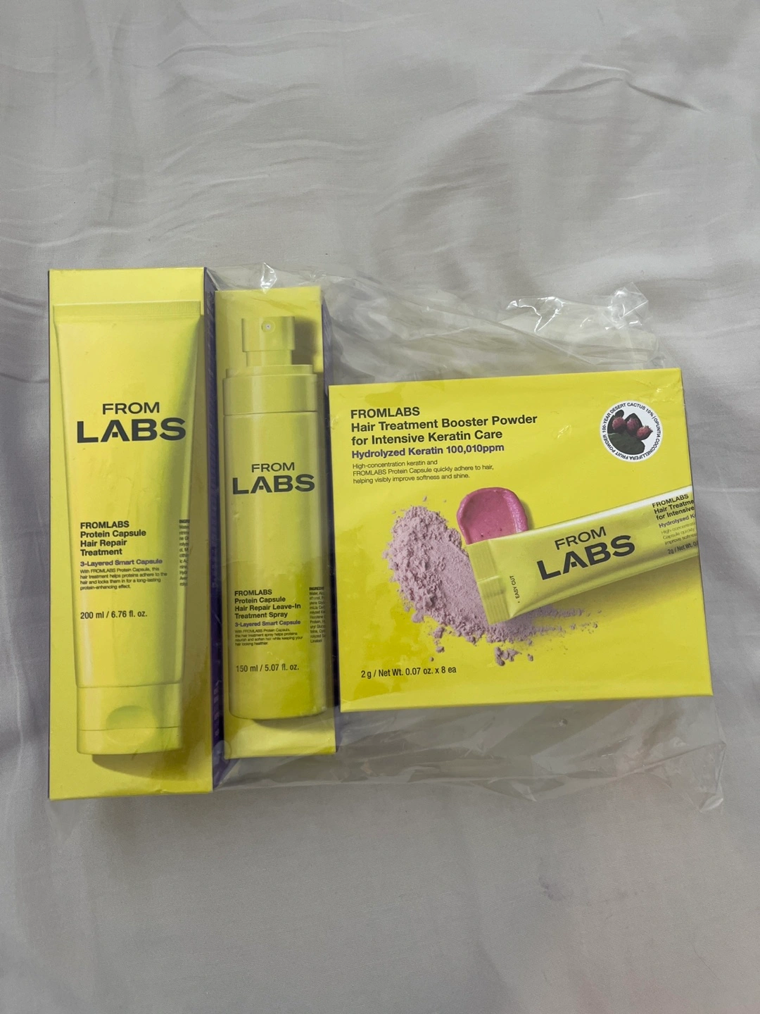 It includes: - Protein Capsule Hair Repair Treatment (200 ml / 6.76 fl. oz.) - Protein Capsule Hair Repair Leave-In Treatment Spray (150 ml / 5.07 fl. oz.) - Hair Treatment Booster Powder for Intensive Keratin Care (2g / Net Wt. 0.07 oz. x 8 ea)