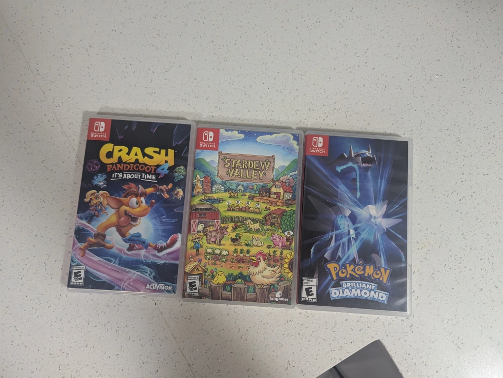 Selling three Nintendo Switch games as a bundle: - Crash Bandicoot 4: It's About Time - Stardew Valley - Pokemon Brilliant Diamond All games were played once. CASH AND PICK UP ONLY