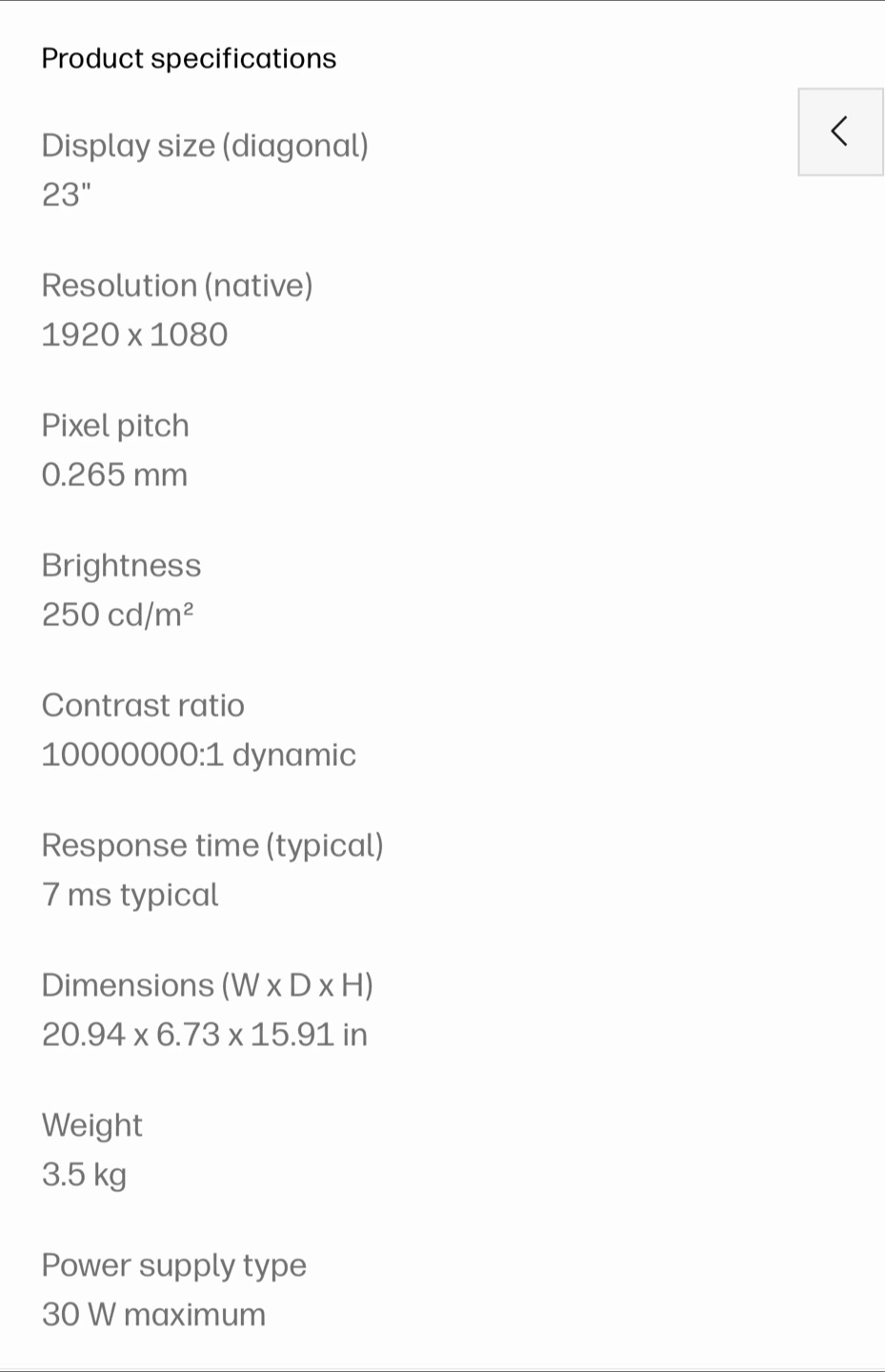 Selling an HP Pavilion 23xi monitor. It has a 23-inch display, native resolution of 1920 x 1080, and a dynamic contrast ratio of 10000000:1. Dimensions are 20.94 x 6.73 x 15.91 inches. Perfect for back to School Students of any age. 23” of monitor great for tired eyes! Large enought screen for effortless viewing.