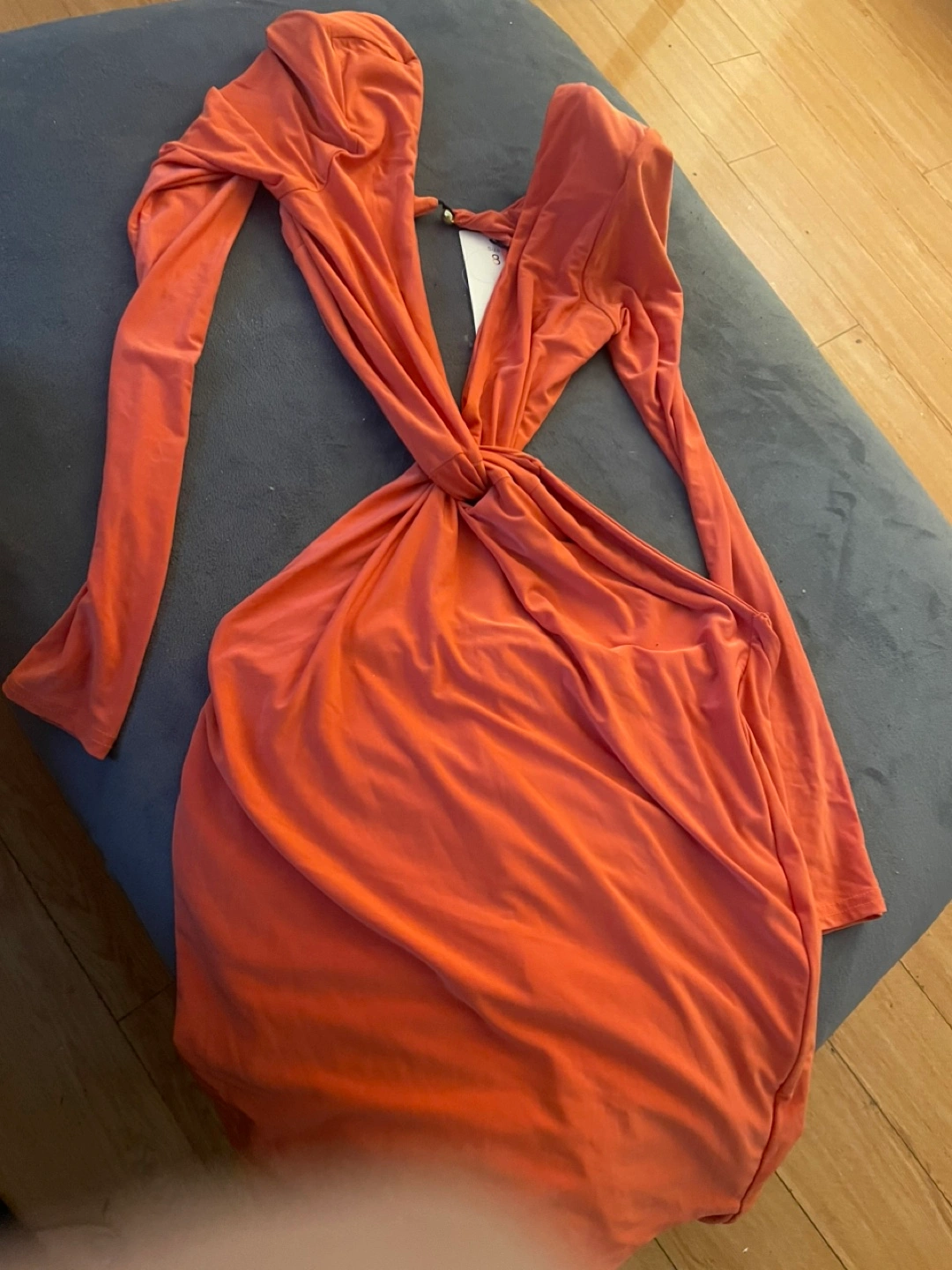 Dramatic plunge and halter dress. Stretchy & curvy Brand new Backless