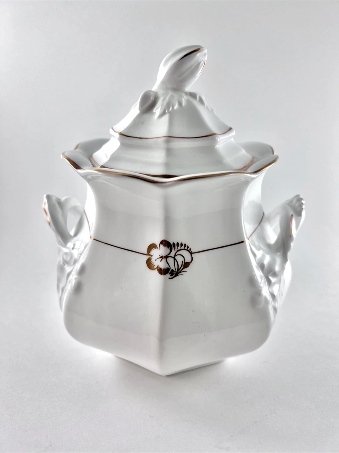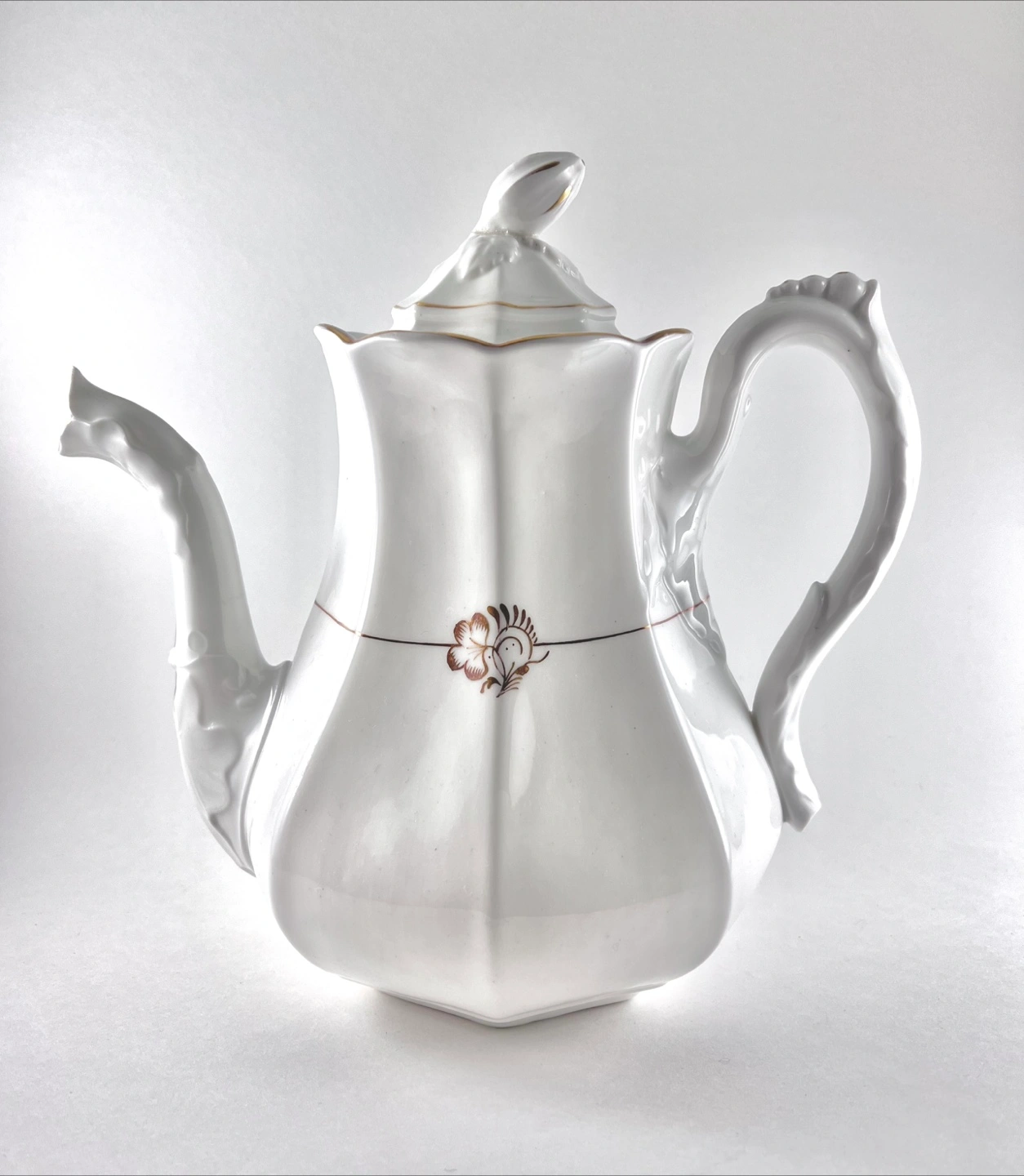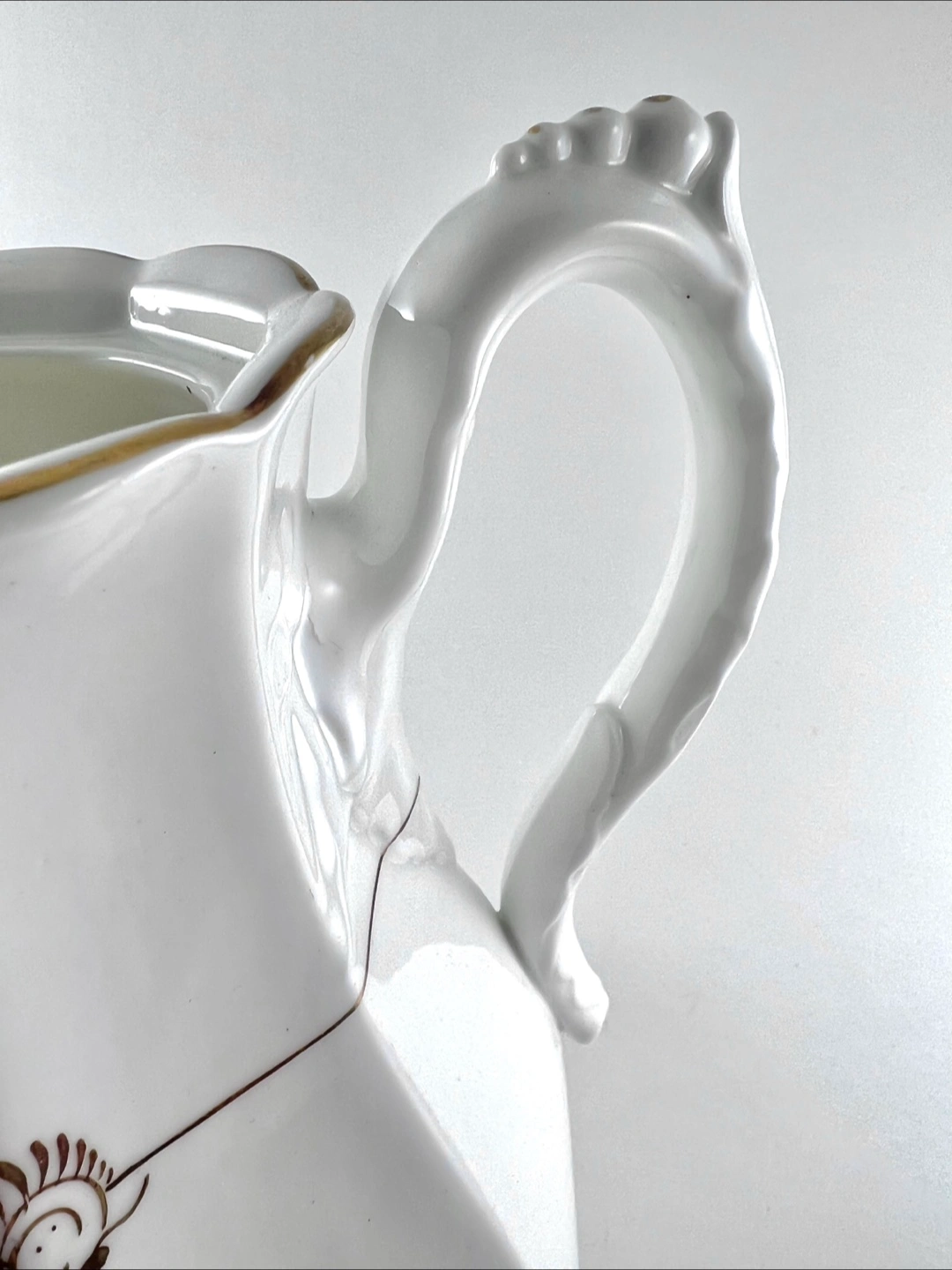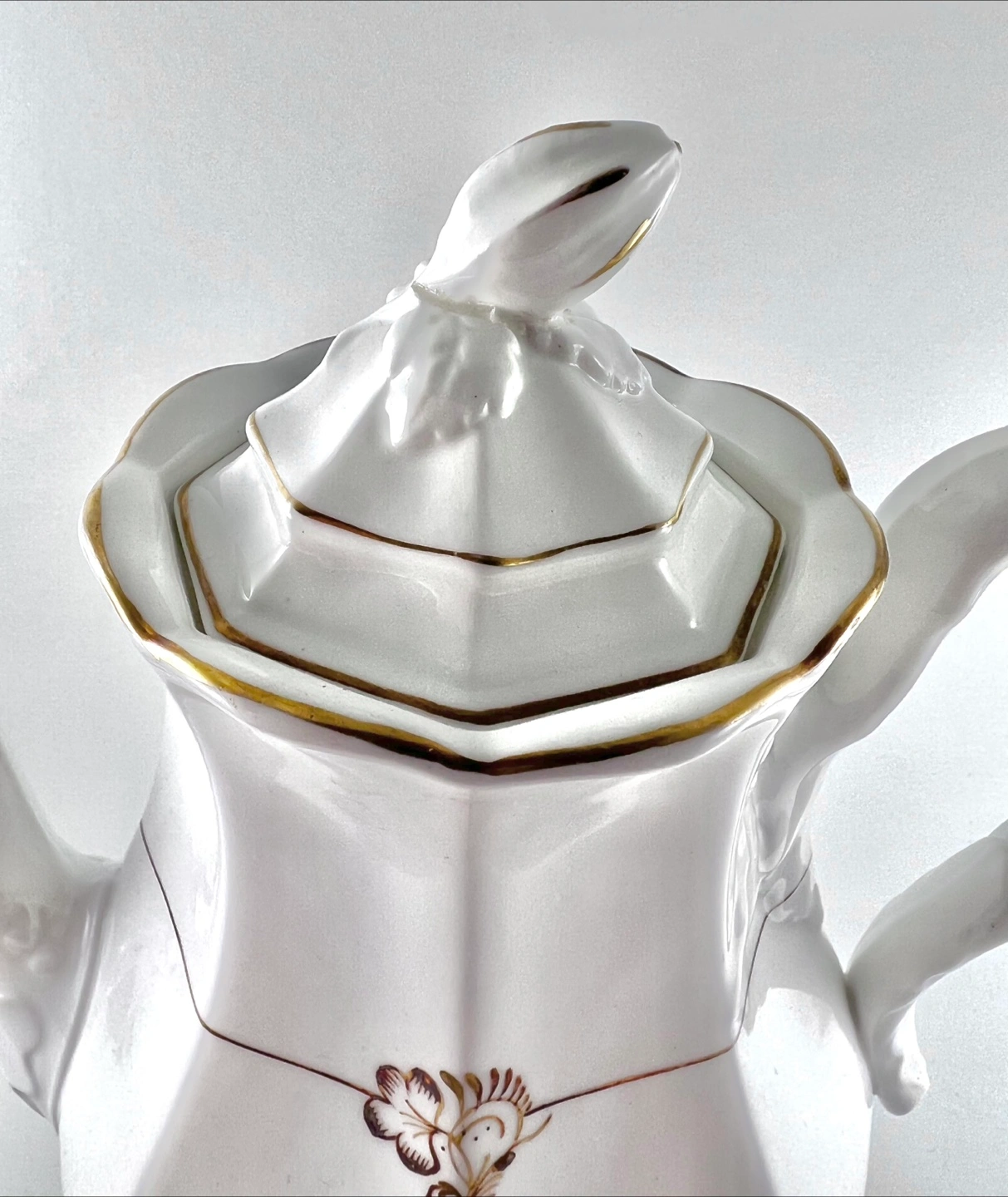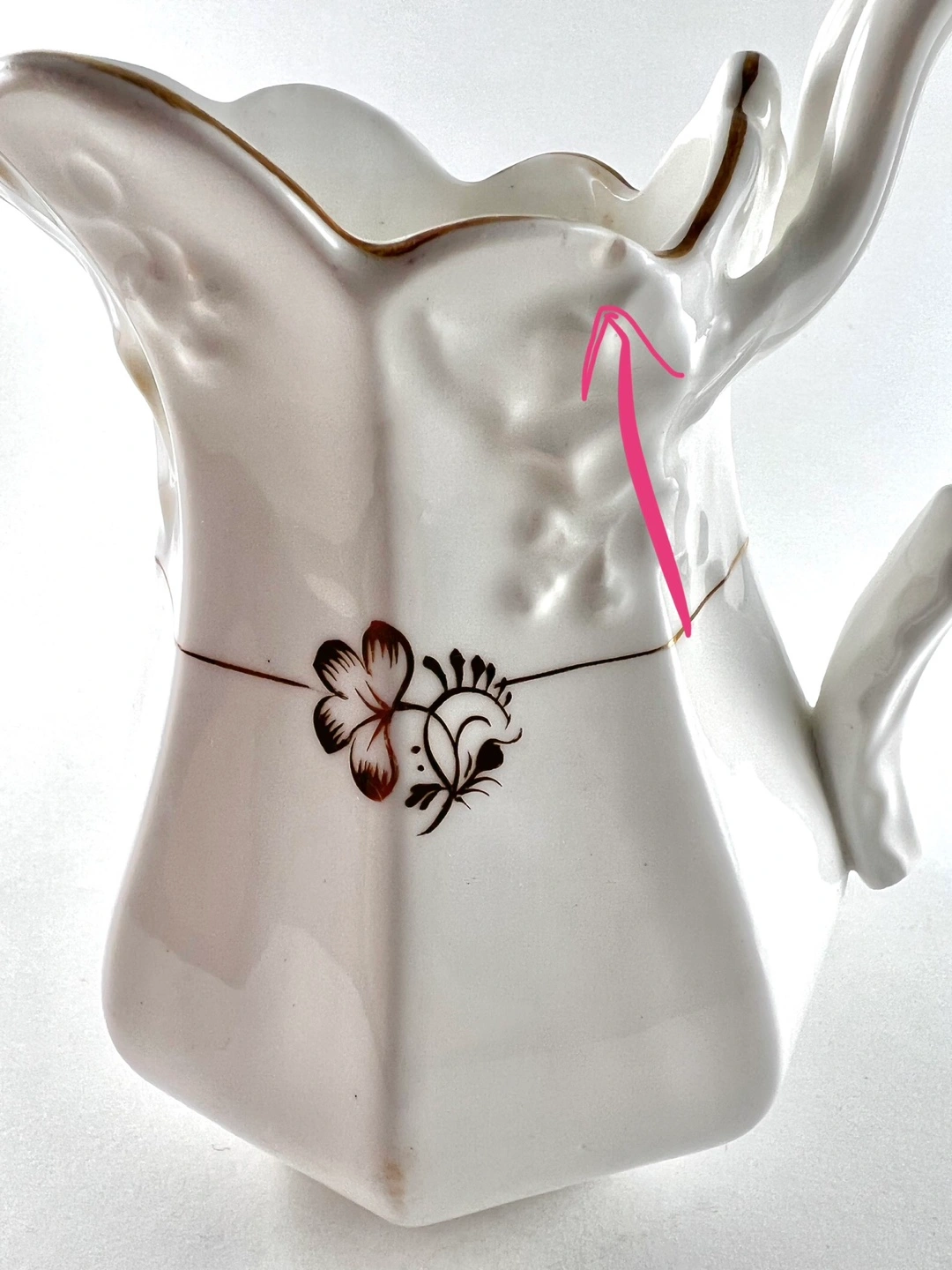 Rare Victorian period circa 1853 Sampson Bridgwood coffee pot set manufactured at Stafford Street Works in Longton Stoke-On-Trent (England). Bears the impressed S. Bridgwood marks on bottoms of all pieces. This set is in excellent quality for its age (170+ years old) Coffee pot & extra large lidded sugar bowl appear to be in unused condition with no chips/cracks or crazing. Large creamer has no cracks or crazing but does have one tiny chip at rim (barely noticeable, see photo). Features leaf pattern & hand-painted simple gold floral accents & bands. A stunning set for the antique china collector! Meetup Options: 1. Avenue Rd & St Clair Ave (public lobby or driveway of condo) or 2. Outside St Clair/Yonge subway station Sorry, no deliveries, other meetup spots or holds (will only hold during travel time for a confirmed pickup)