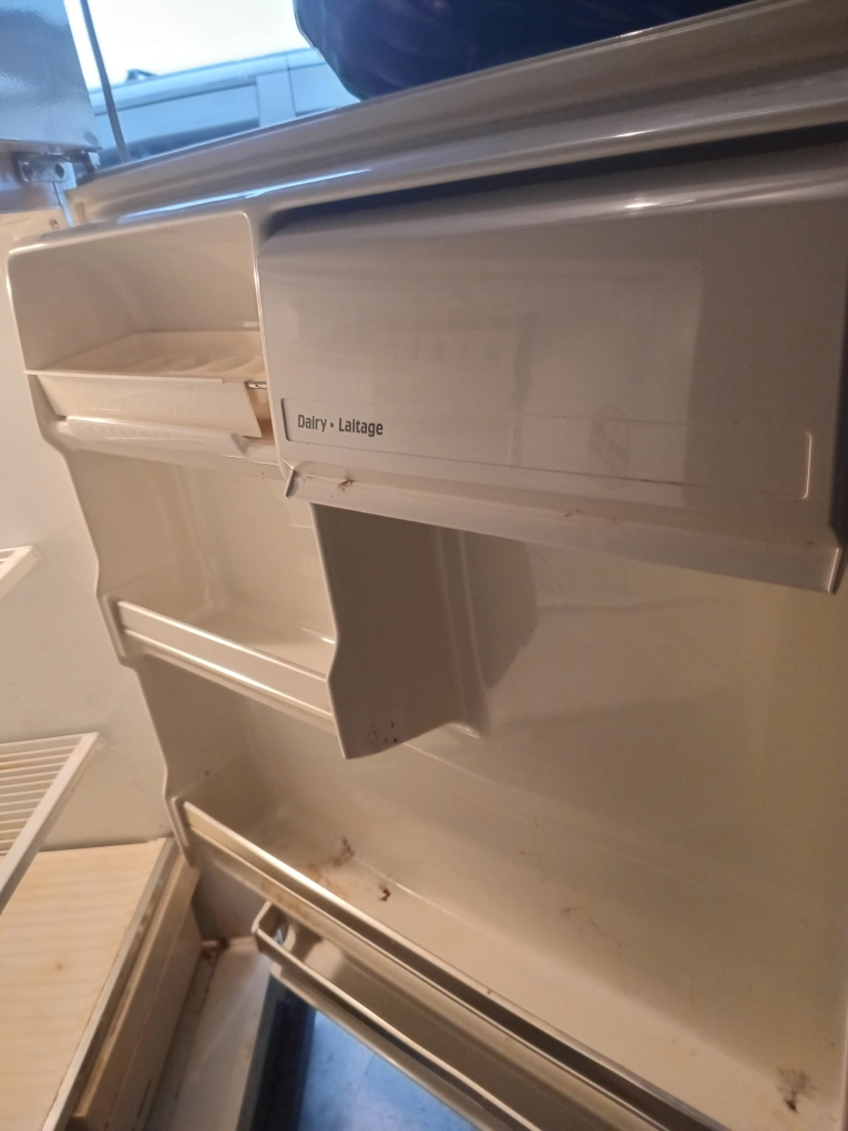 Selling a fridge. It is yellow and has dairy storage on the door.