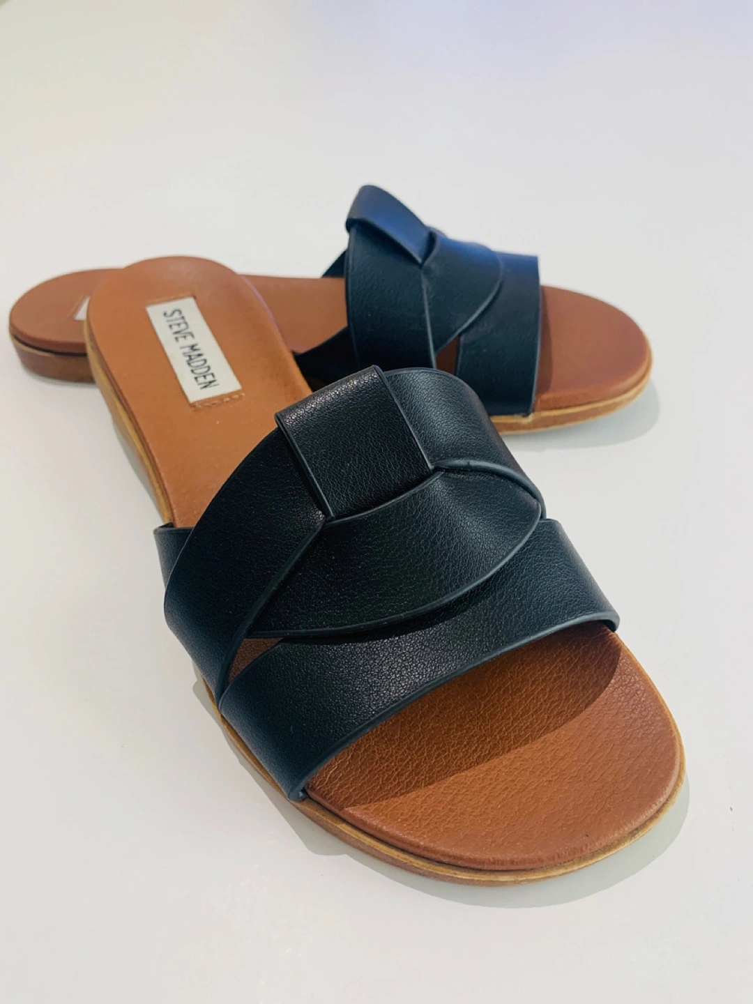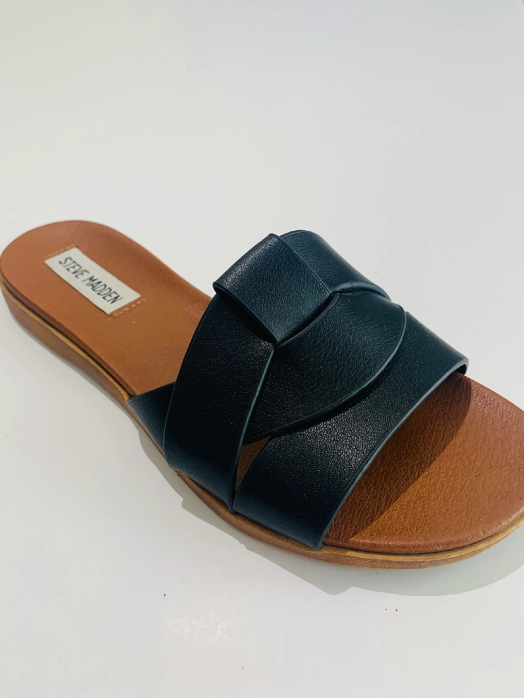 Selling a pair of Steve Madden sandals in black. size 5.5 and in great condition. The box is included! Originally bought for $65 Cash only Pick up at Pacific Center in Downtown