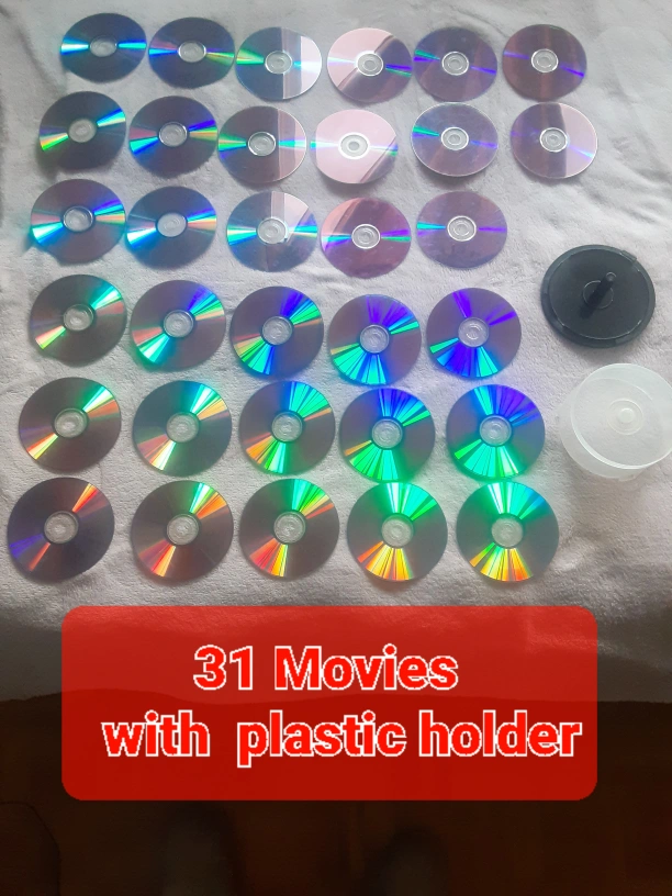 Selling a collection of 31 movies on DVDs. They come with a convenient plastic movie disc holder for easy storage and organization