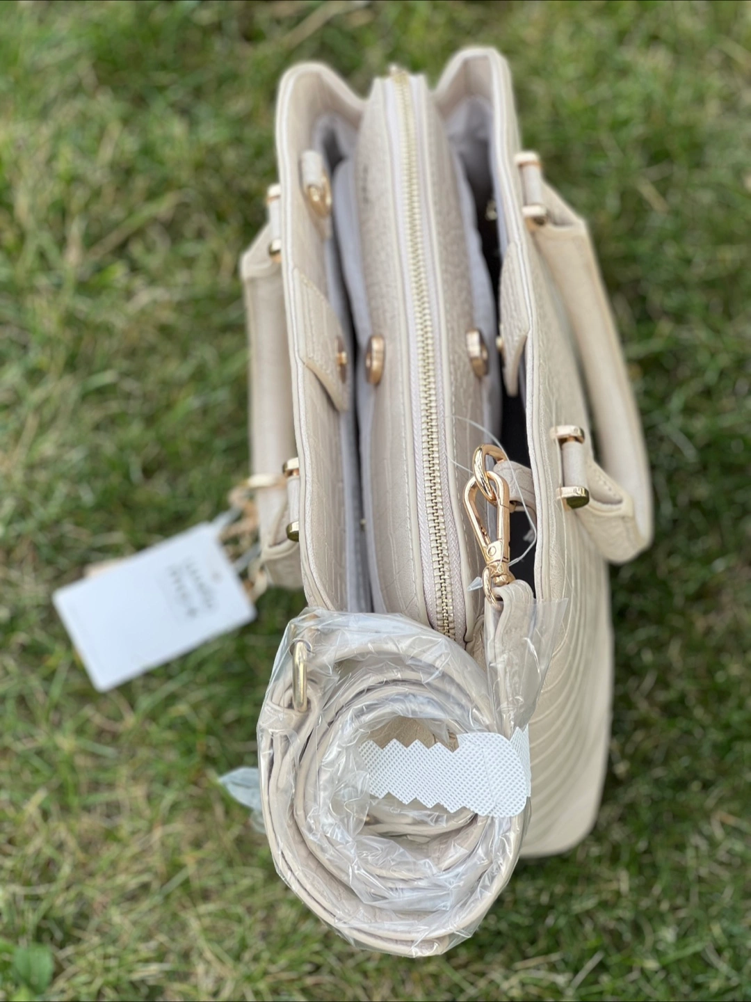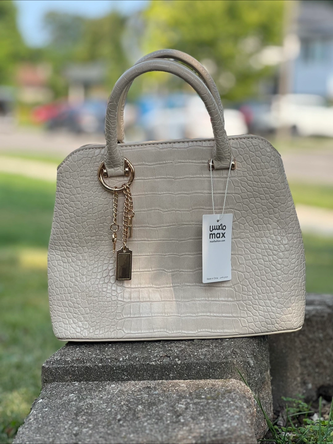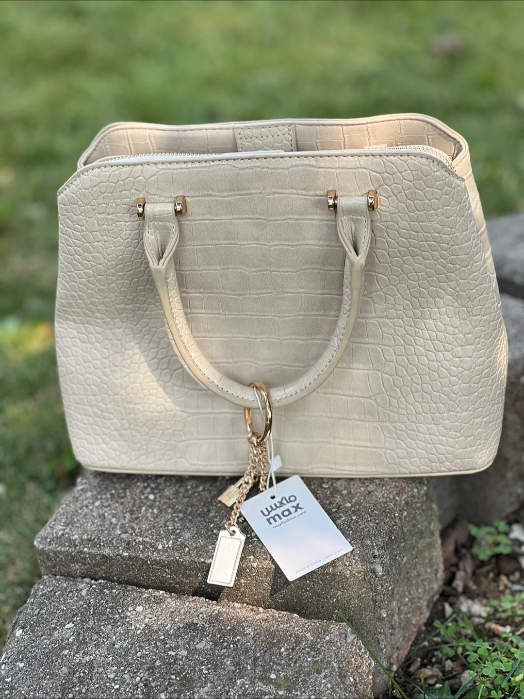 Selling a brand new handbag from Max Fashion! It's a lovely beige colour and has a stylish texture. Perfect for everyday use or a special occasion. Comes with a shoulder strap still in its original packaging!