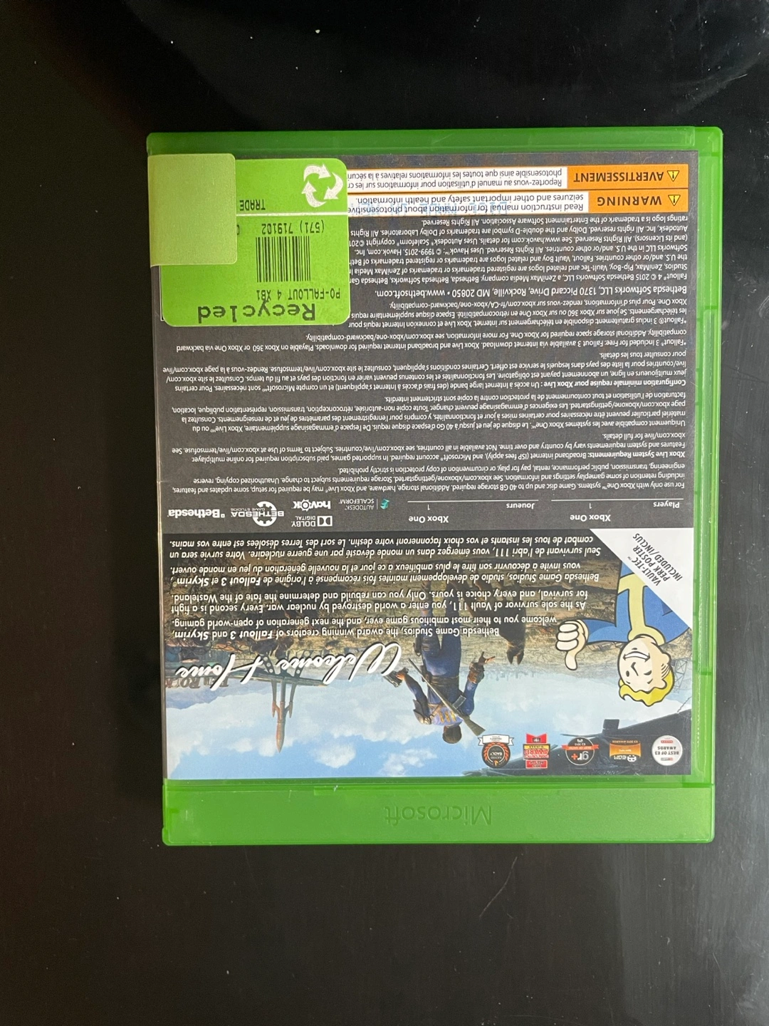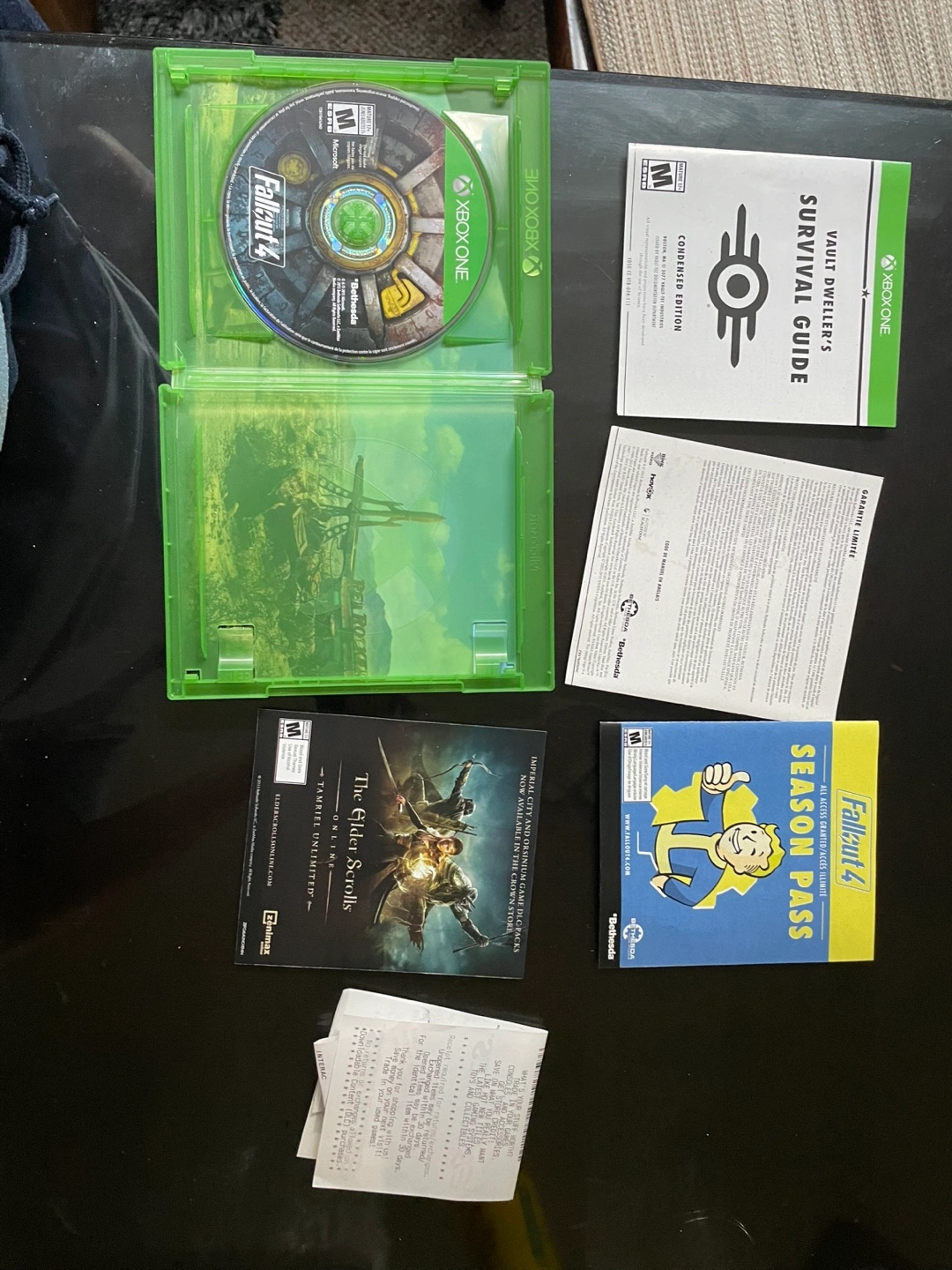 Selling my Fallout 4 game for Xbox One. Includes the game disc, case, and some inserts. Ready for a new player to explore the wasteland!