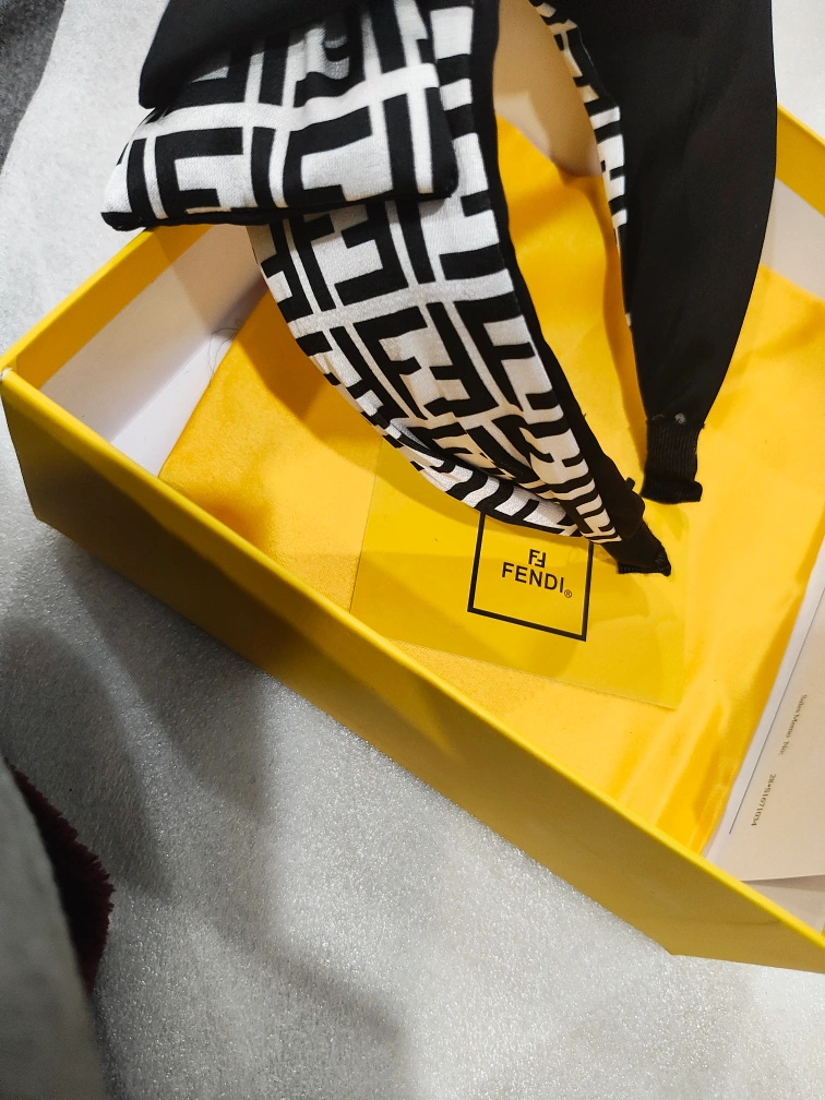 Selling a Fendi headband in black and white. It comes with its original box and dust bag. Perfect for adding a touch of style to any outfit!