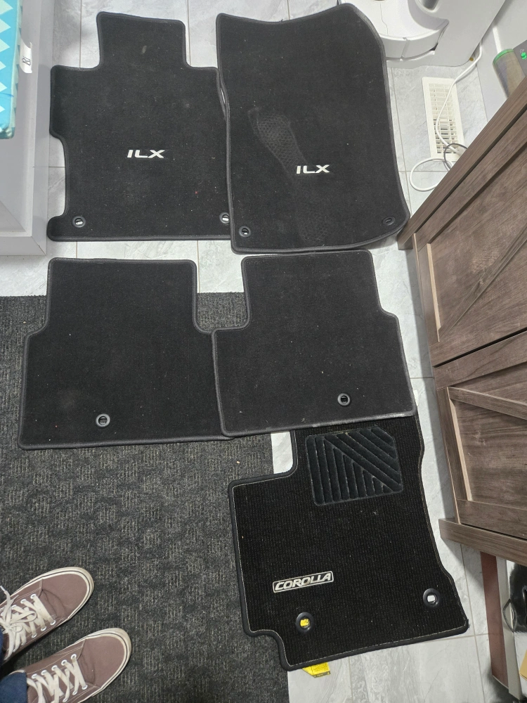 Set of used floor mats. Includes mats for an Acura ILX and a Toyota Corolla in great condition. Acura ILX Trunk Tray in used condition