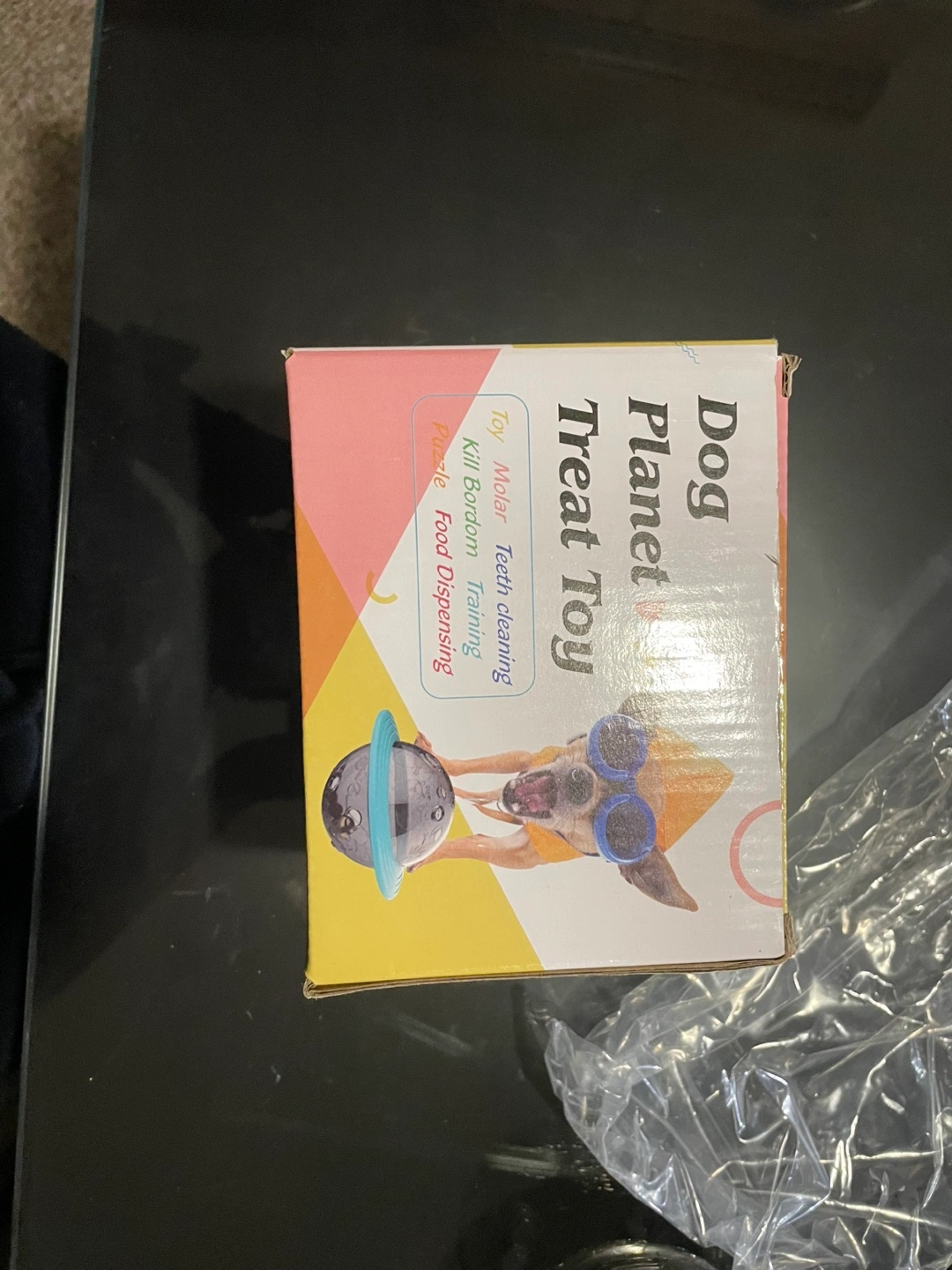 I'm selling a Dog Planet Treat Toy. It's a molar teeth cleaning puzzle and food dispensing toy for your furry friend. It comes with the box