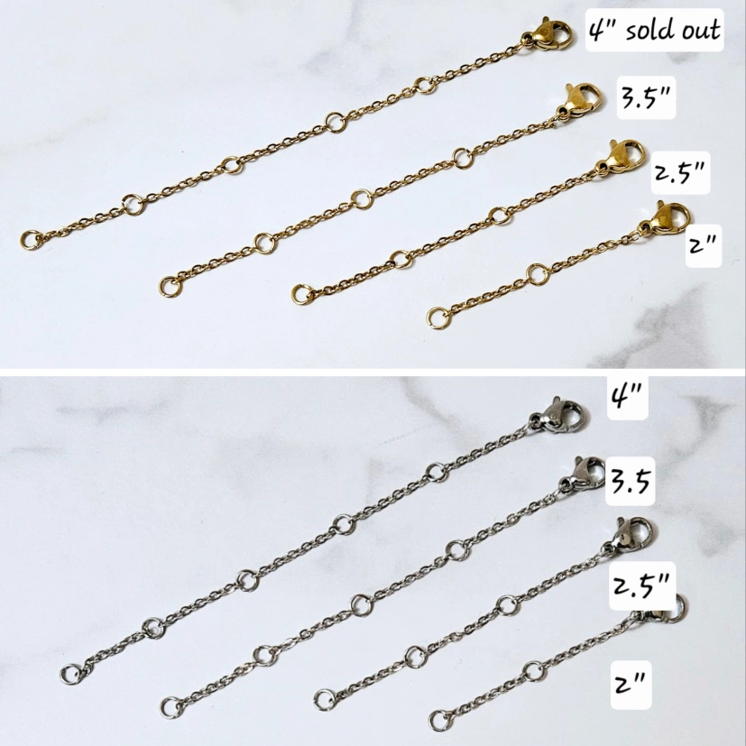 2 pcs chain extender (adjustable) Stainless steel non tarnish Available in 4 different lengths, your choice Includes pouch Pick up in garden city or can ship via Canada Post lettermail $3