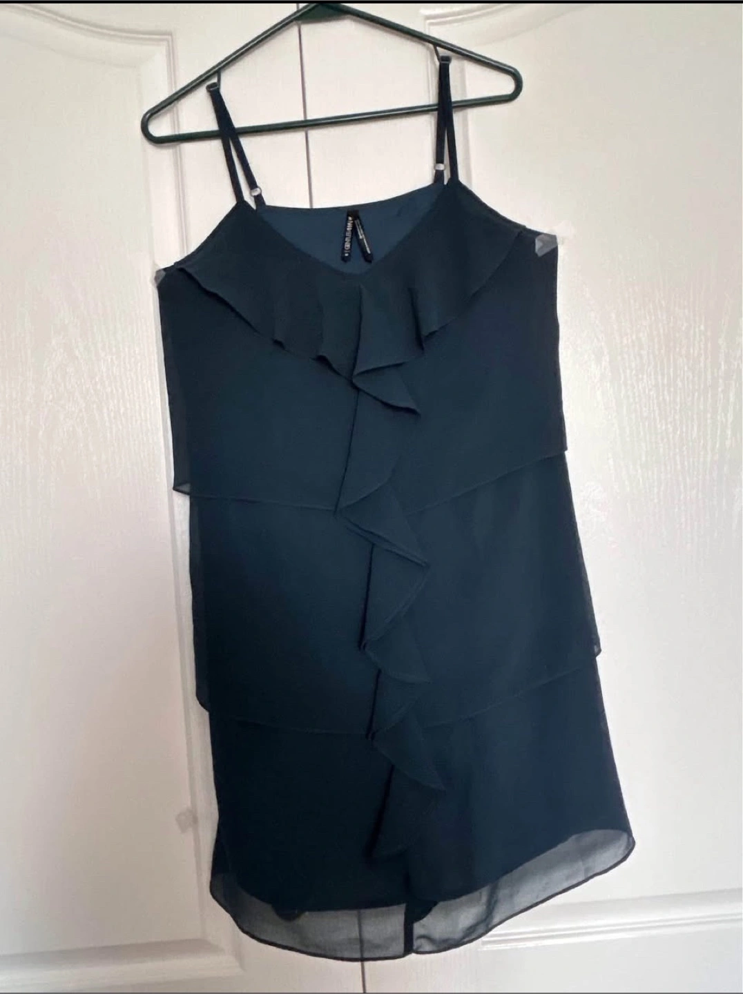 Selling dress in a lovely dark green colour. It's a size medium and made of 100% polyester. The dress has a tiered design with ruffles, perfect for a night out or a special occasion! It's in great condition and ready for a new home