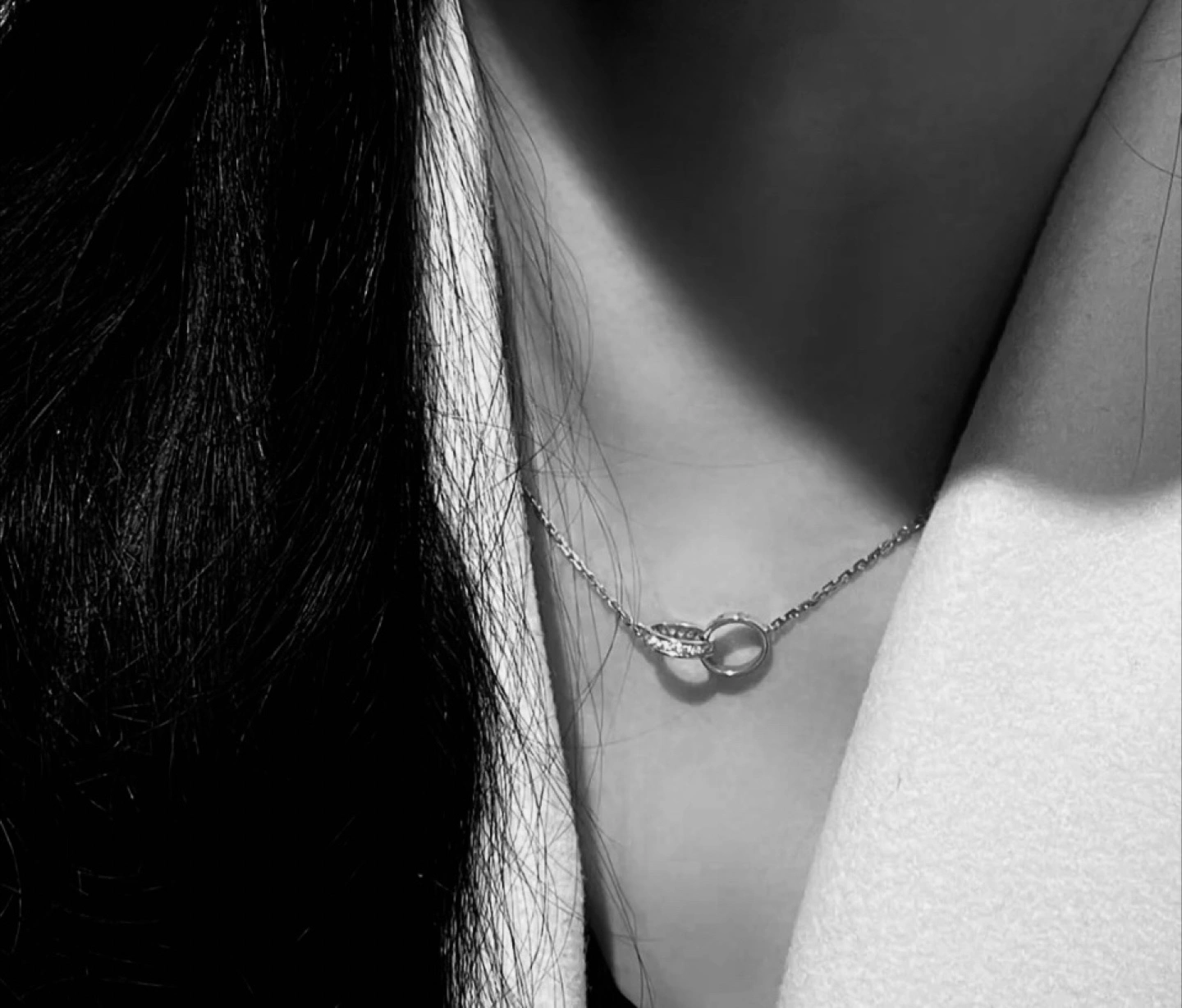 Two intertwined rings on a delicate chain. A timeless piece. Selling the gift I was given “as is”, not sure if it’s white gold, plated gold or silver; zirconia or diamond; original or not. Width of each band approx. 12 mm Adjustable chain: 10”- 8” Pendant attached to the chain NWOT PFSF home
