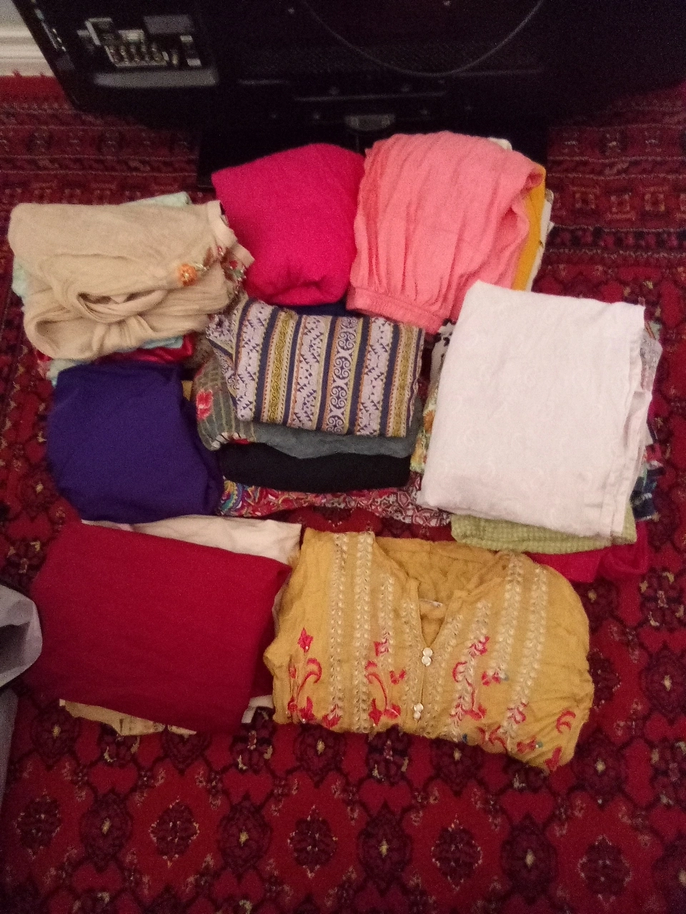 This is a colourful bundle of used Punjabi clothes, great for adding some variety to your wardrobe. The bundle includes a mix of styles and colours, perfect for different occasions. From a Pet Free and Smoke free home. Specifications: Size: Mixed Cost: $10 Per Piece Cost $20 Per set Cost:$100 For the Entire Set (Discounted)
