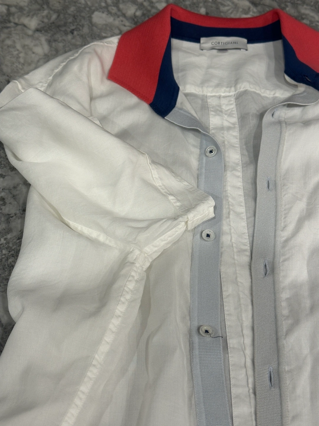 Selling a Cortigiani shirt in white! Size 52 (Large) and made in Italy. Premium designer clothing. No stains, in perfect condition. Was a gift to my husband, but he never wore it. Such polo shirt costs around $500 from this brand.