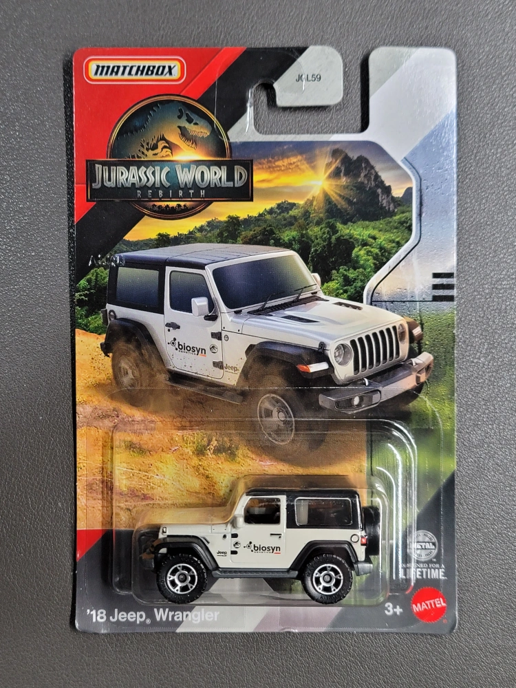 Selling a Matchbox '18 Jeep Wrangler from the Jurassic World Rebirth series! This little Jeep is ready for a new home. It's designed for ages 3+