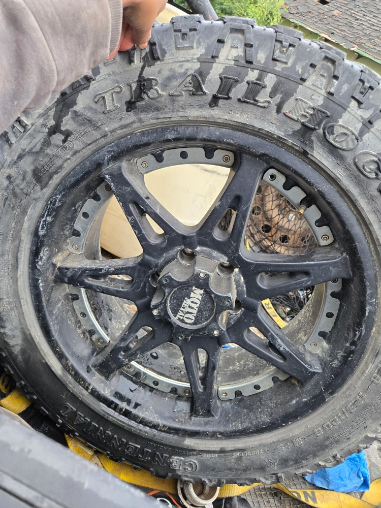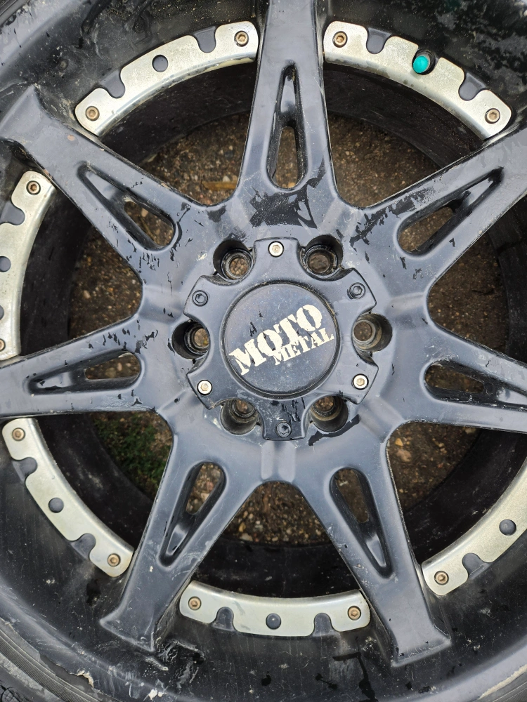 Selling a set of Moto Metal rims. They show some wear and could use a good cleaning, but they're still in good shape for off-roading or everyday use. The measurement across the center is about 6 inches. Got them in a storsge locker i boight