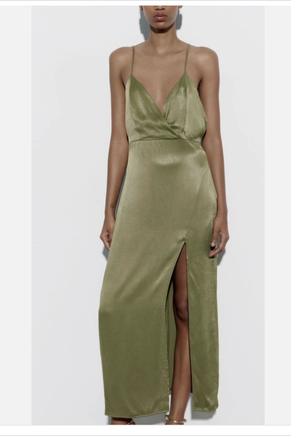 Selling a Zara olive green slip dress in size XS. It's a beautiful dress with a flattering silhouette. Perfect for a night out or a special occasion!DT queen pickup only