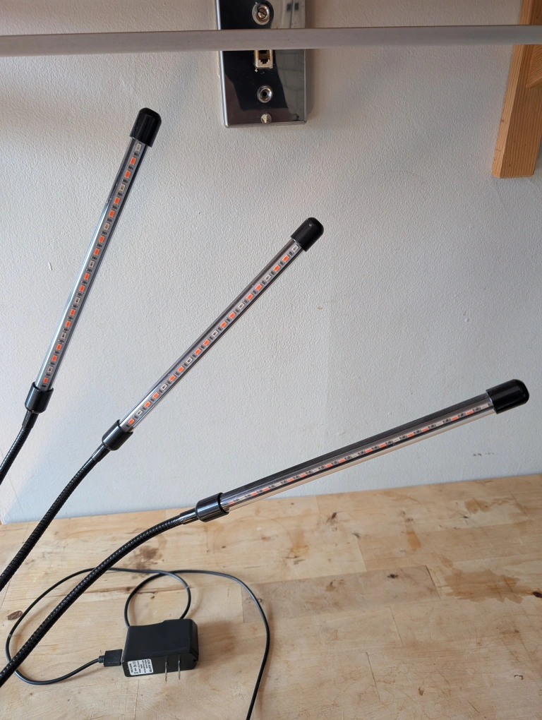 Selling a handy LED grow light with a clip. It's perfect for starting seedlings or keeping your plants happy indoors. It comes with a USB power adapter and a control unit to adjust the brightness and timer