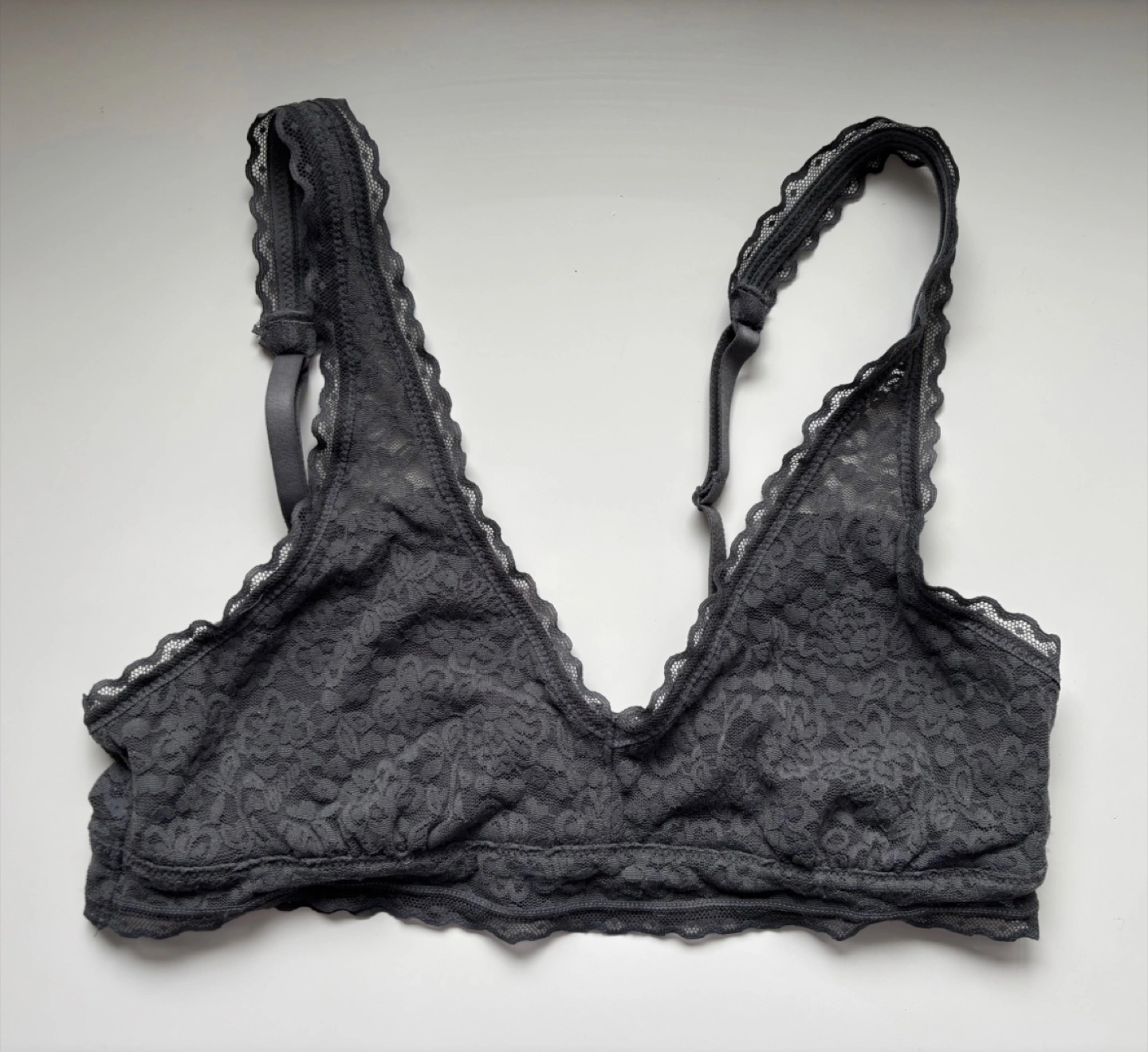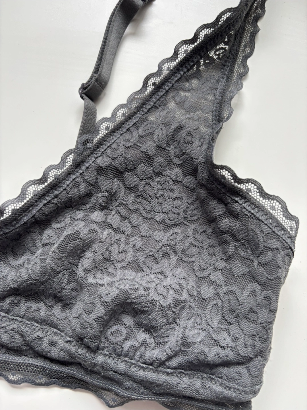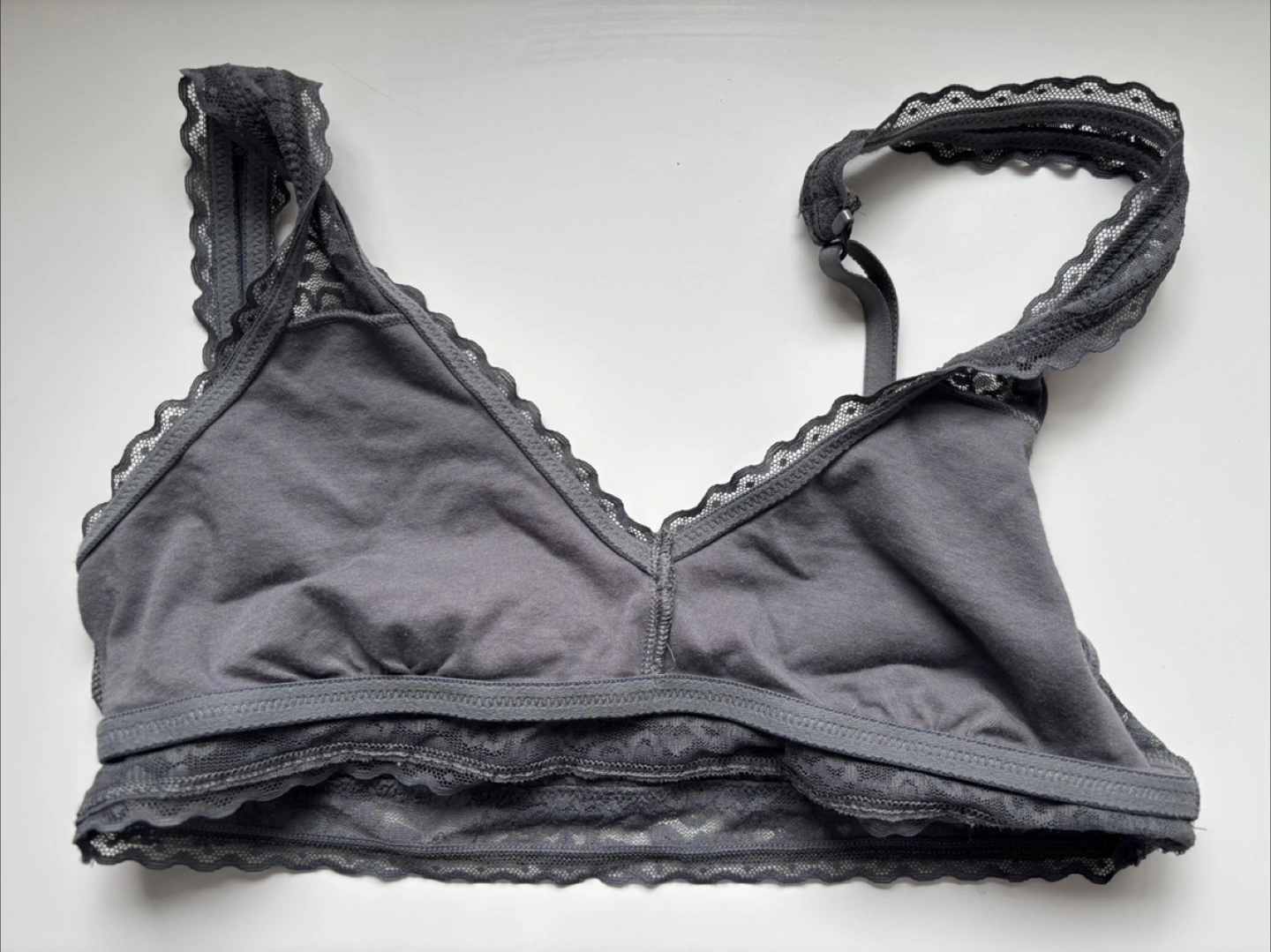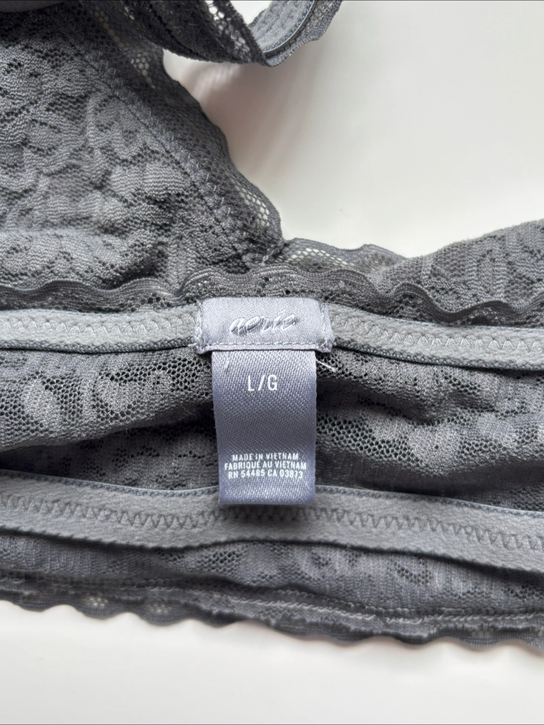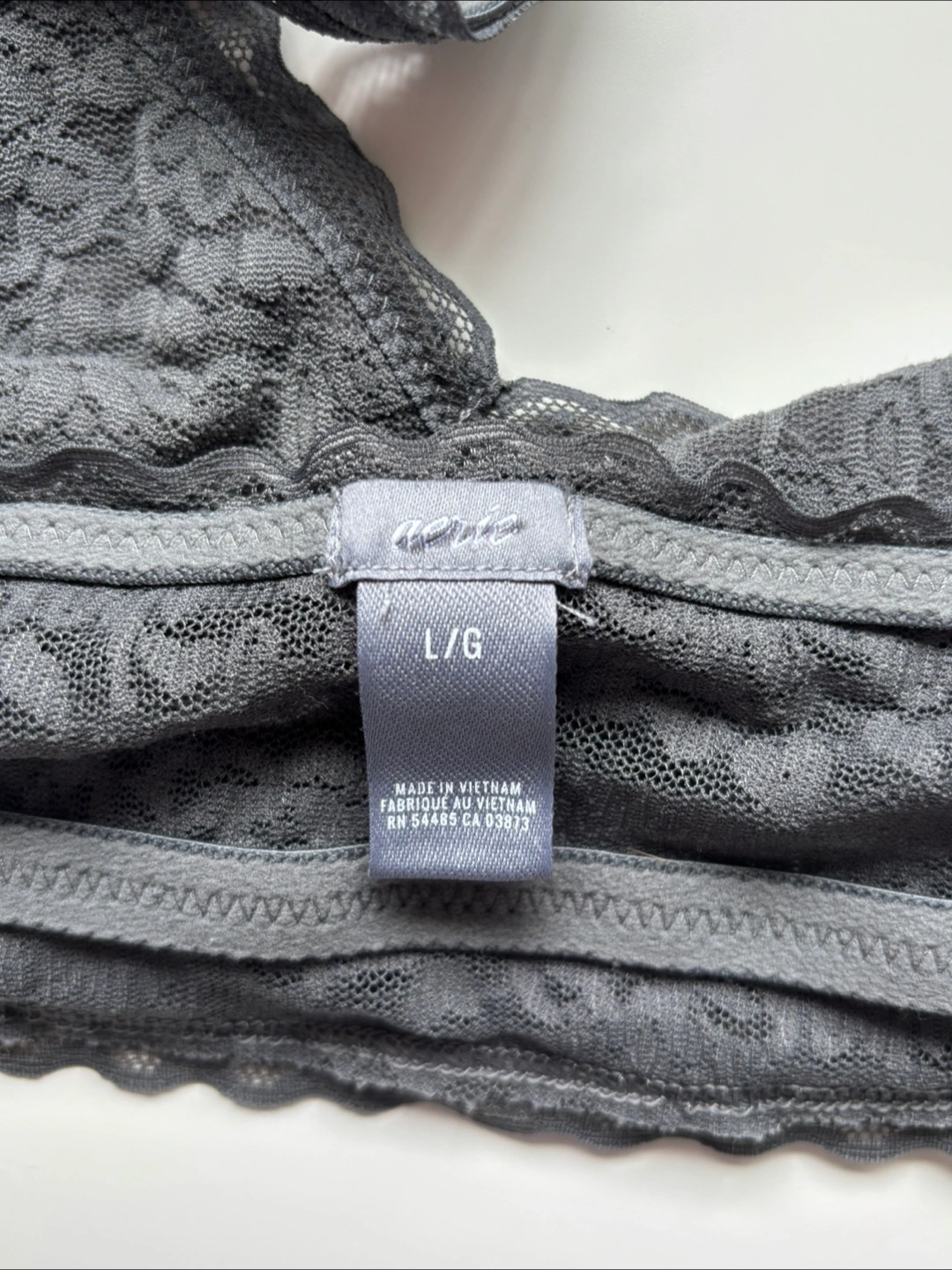 Selling a comfy Aerie bralette in size large! It's a pretty grey colour with lace detailing. Perfect for everyday wear or lounging around the house