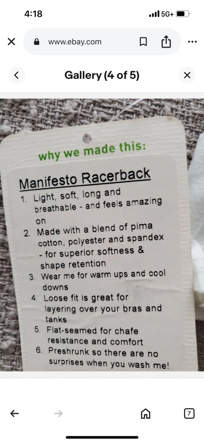 This Lululemon Manifesto Racerback tank is made with a blend of pima cotton, polyester, and spandex, making it light, soft, long, and breathable. It's pre-shrunk, so no surprises when you wash it! The loose fit is great for layering over your bras and tanks.
