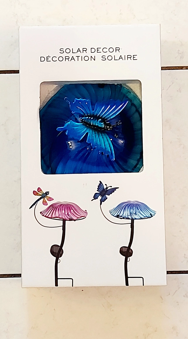 Brand New Blue Butterfly Solar Decor Brand New in Box The lights are designed for decorative purposes in gardens, pathways, or outdoor areas. Store Price: $40.75