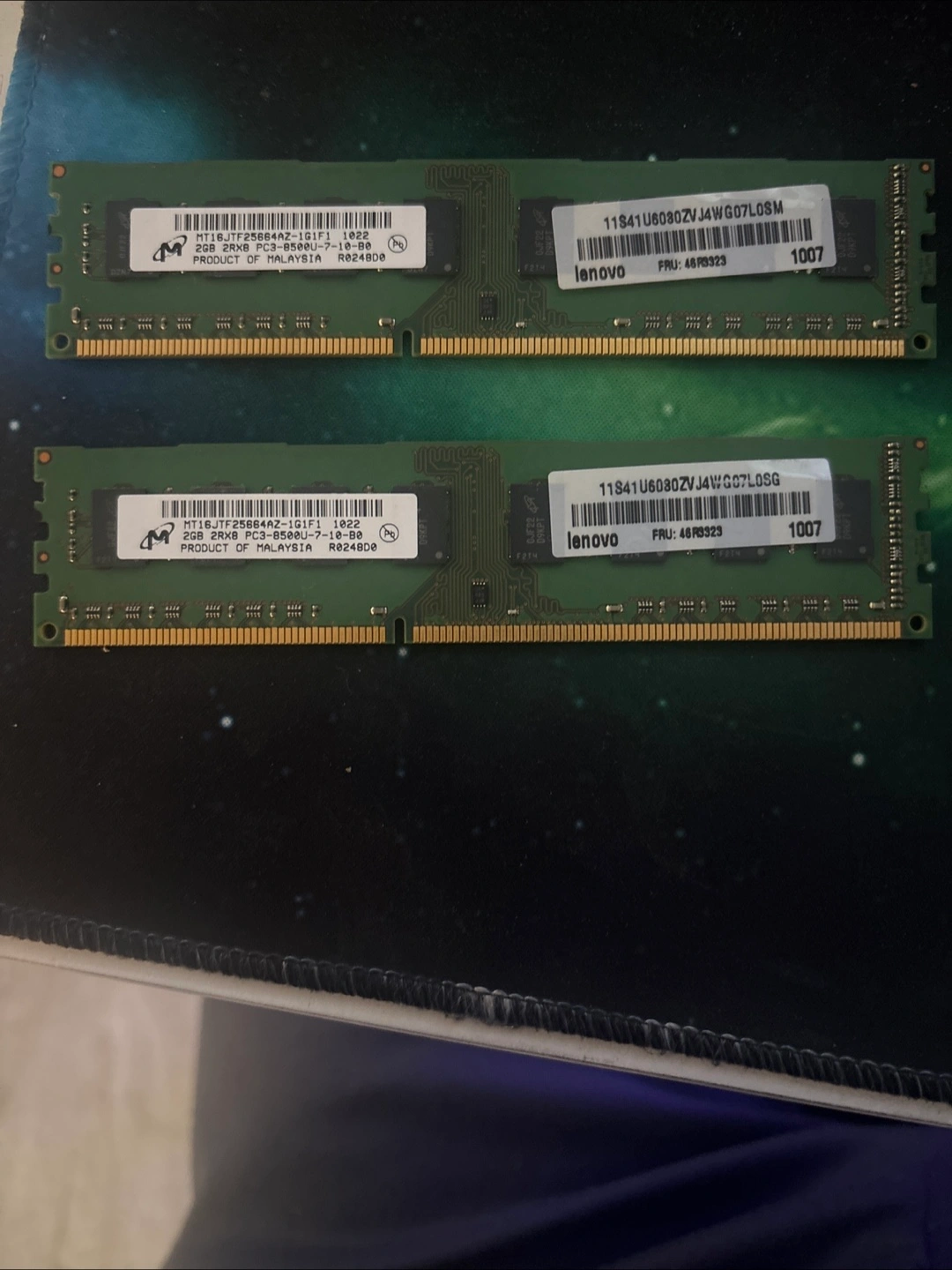 Selling a pair of Lenovo 2GB PC3-8500U RAM sticks. They're in great shape and ready to boost your computer's performance! Perfect for older systems or as spares.