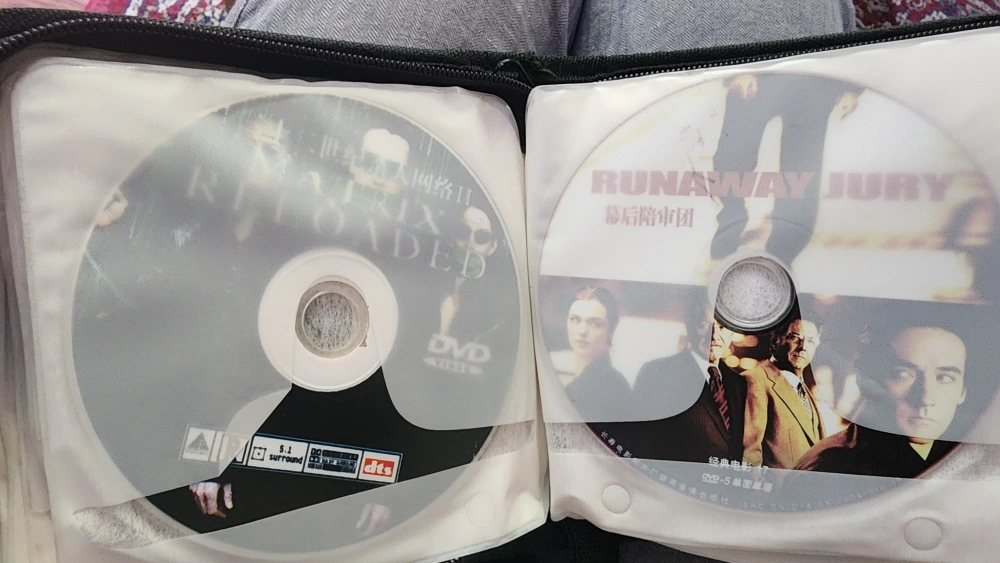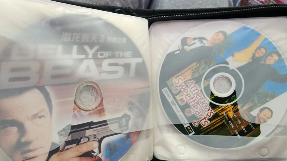 A box of hundreds of CDs/DVDs, mostly popular movies from the early 2000s, a lot of Chinese language music CDs, and popular western artists like Kenny G. And various Chinese language shows, and bootleg software from the early 2000s. All should be working condition, kept nice and safe in leather CD cases which are also included.