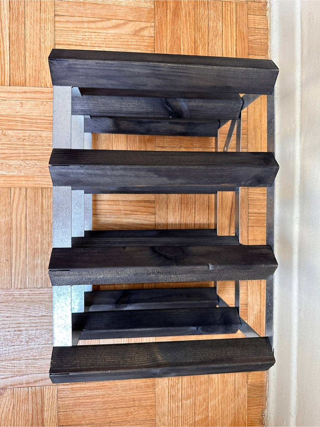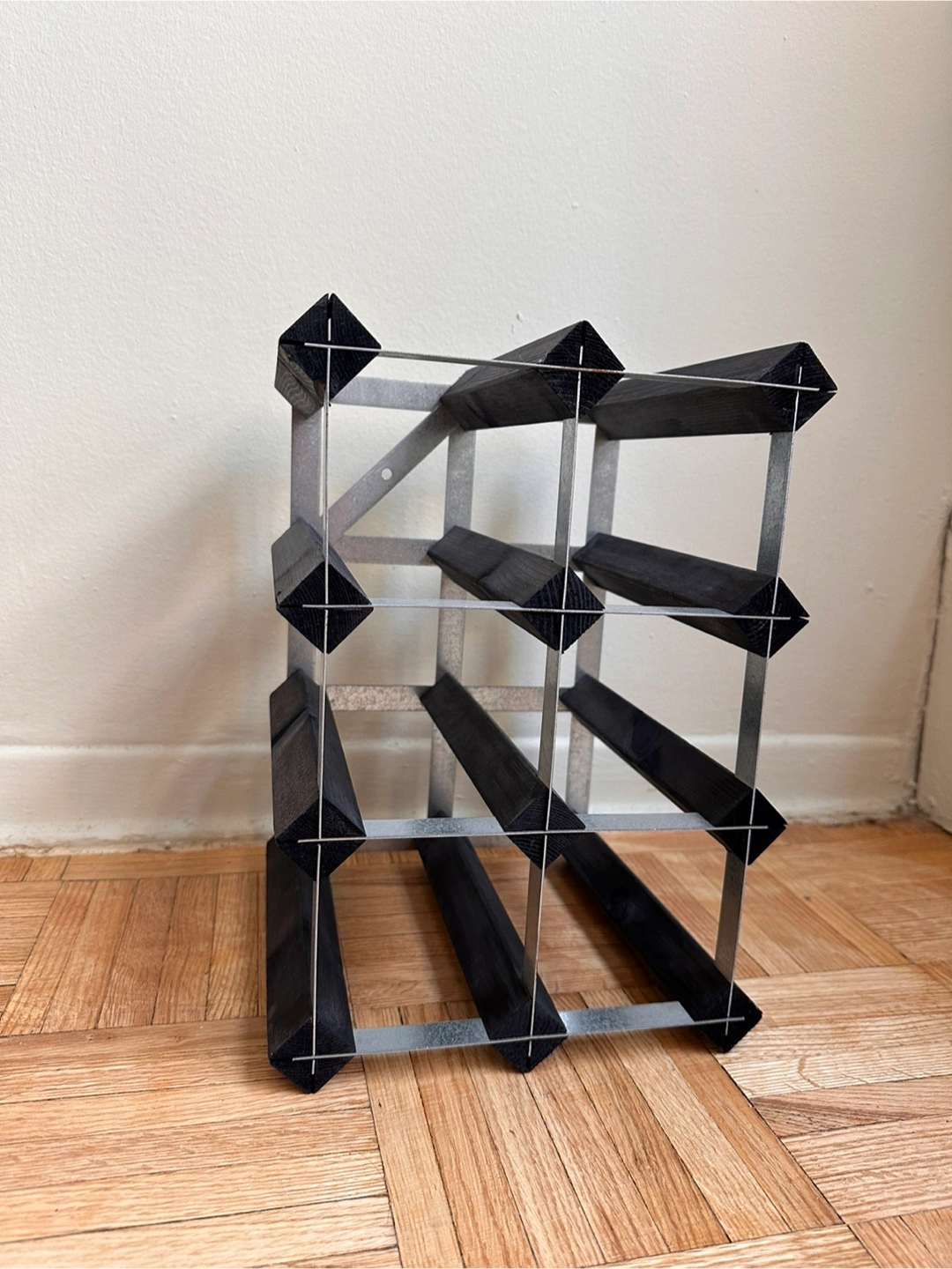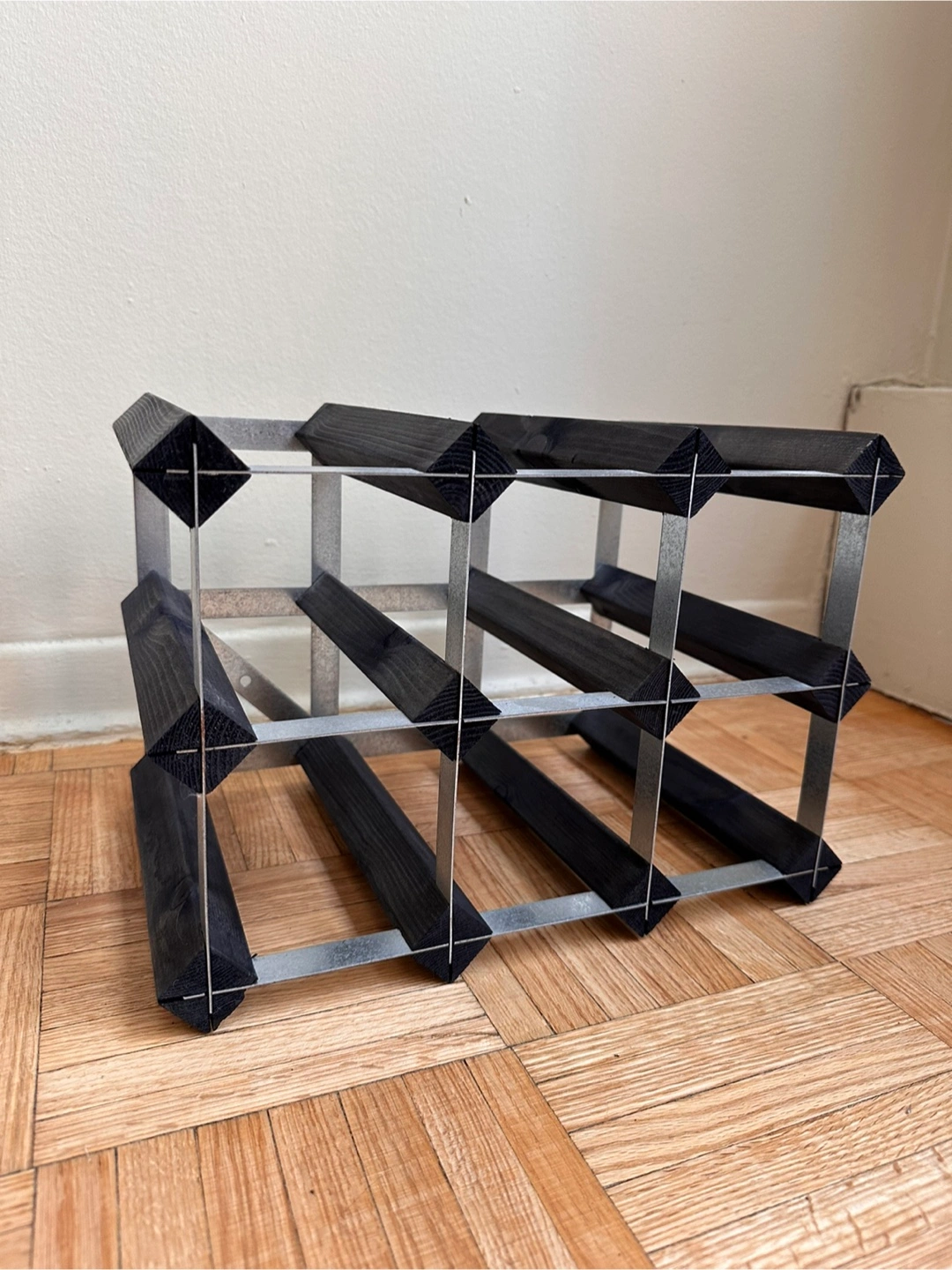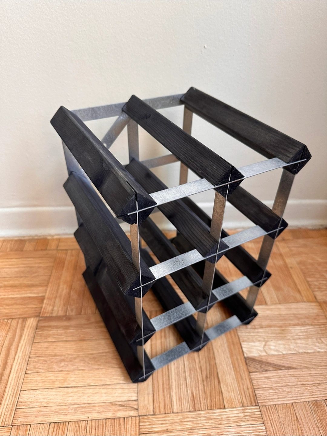 Selling wood wine rack. It's made of wood and silver metal and holds 9 bottles. Perfect for a small space or to start your wine collections Size: 9 x 9 12.5 inches Pick up near Yonge and Bloor