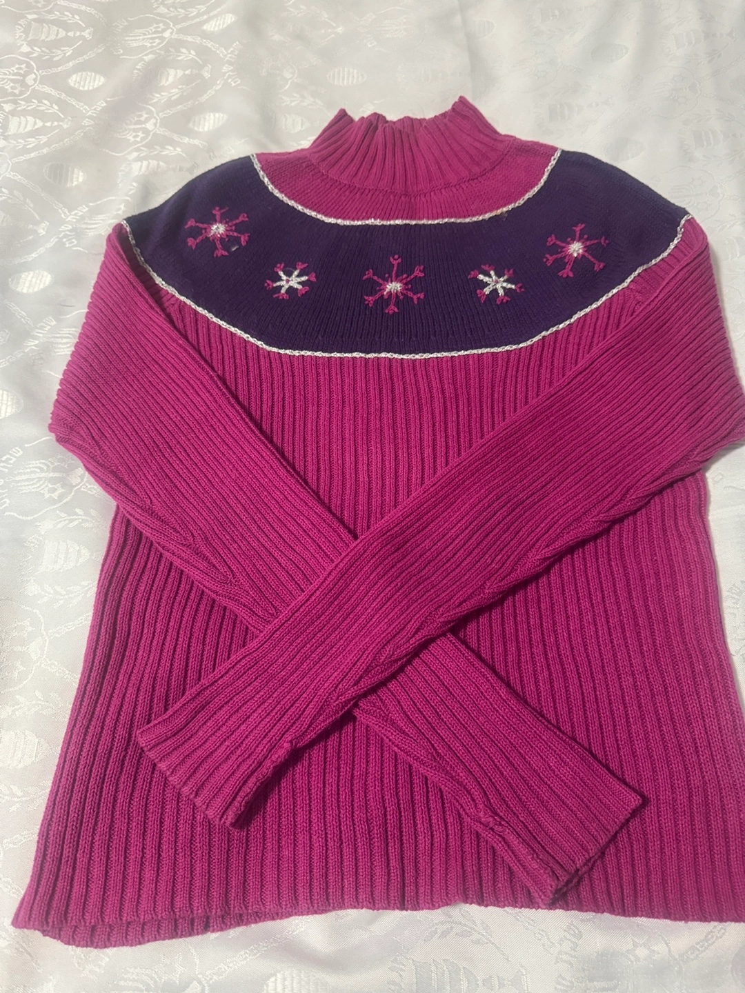 A cute pink knit sweater with a snowflake pattern! It's in Excellent condition and perfect for the colder weather. t would look great paired with jeans or leggings for a casual, stylish look. Porch pick up,cash only, midland and Lawrence, Scarborough