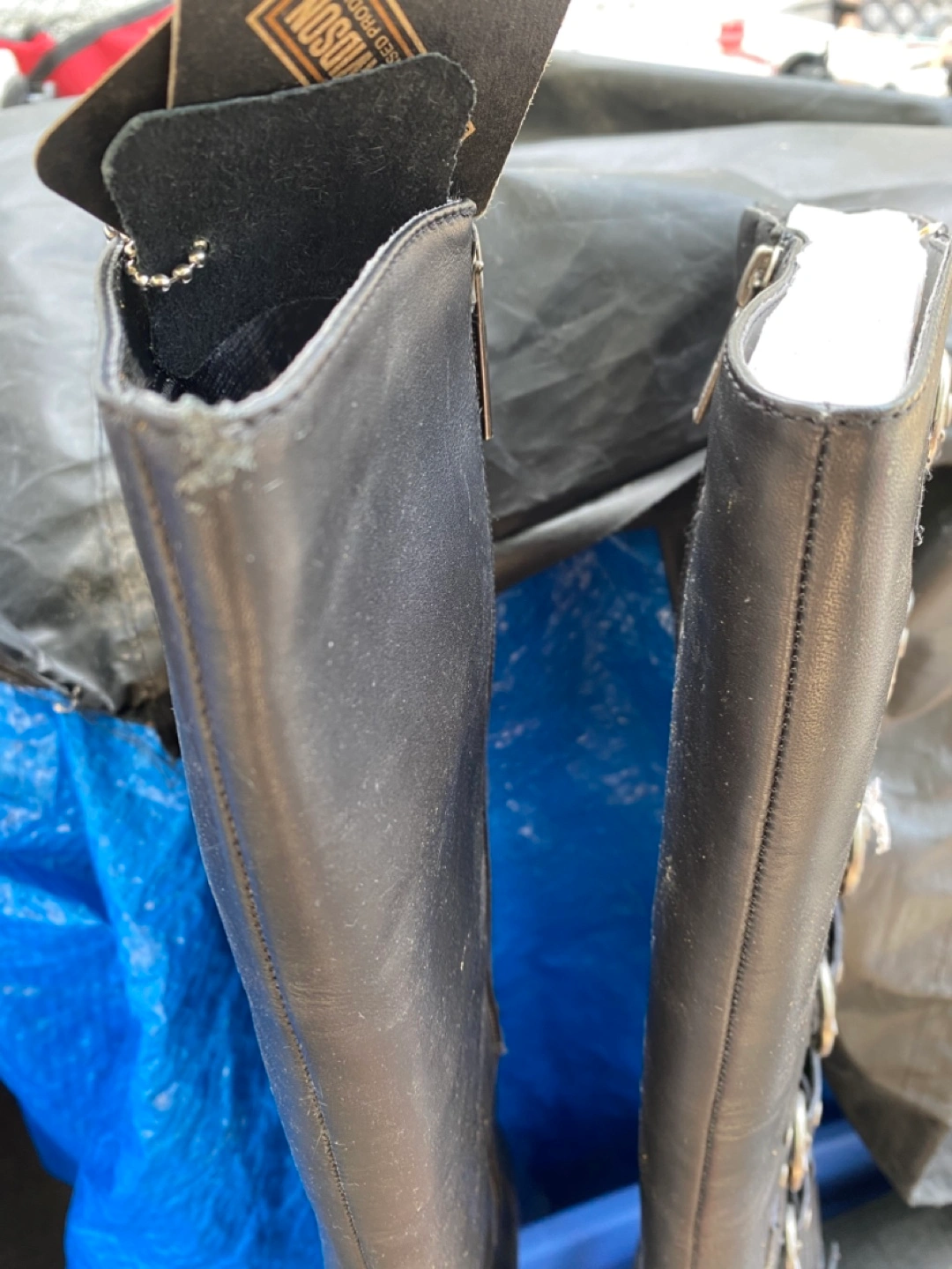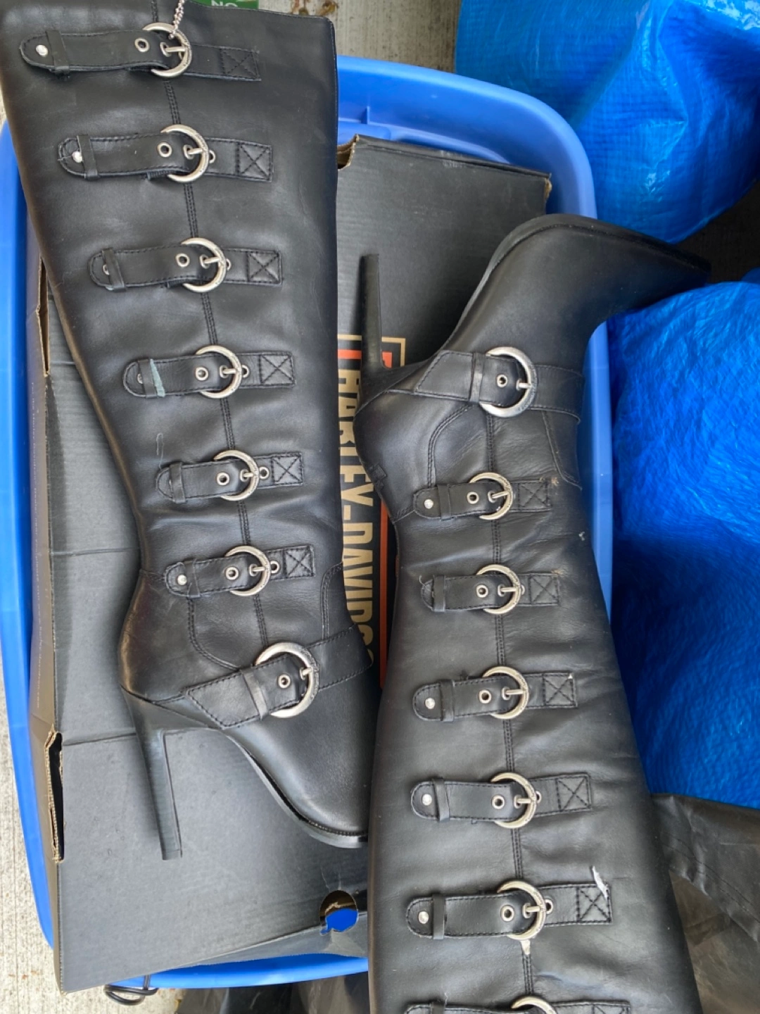 Selling a pair of Harley Davidson black leather boots. They are a women's size 8. These stylish boots feature a sleek design with buckle accents. Perfect for adding a bit of edge to your wardrobe!