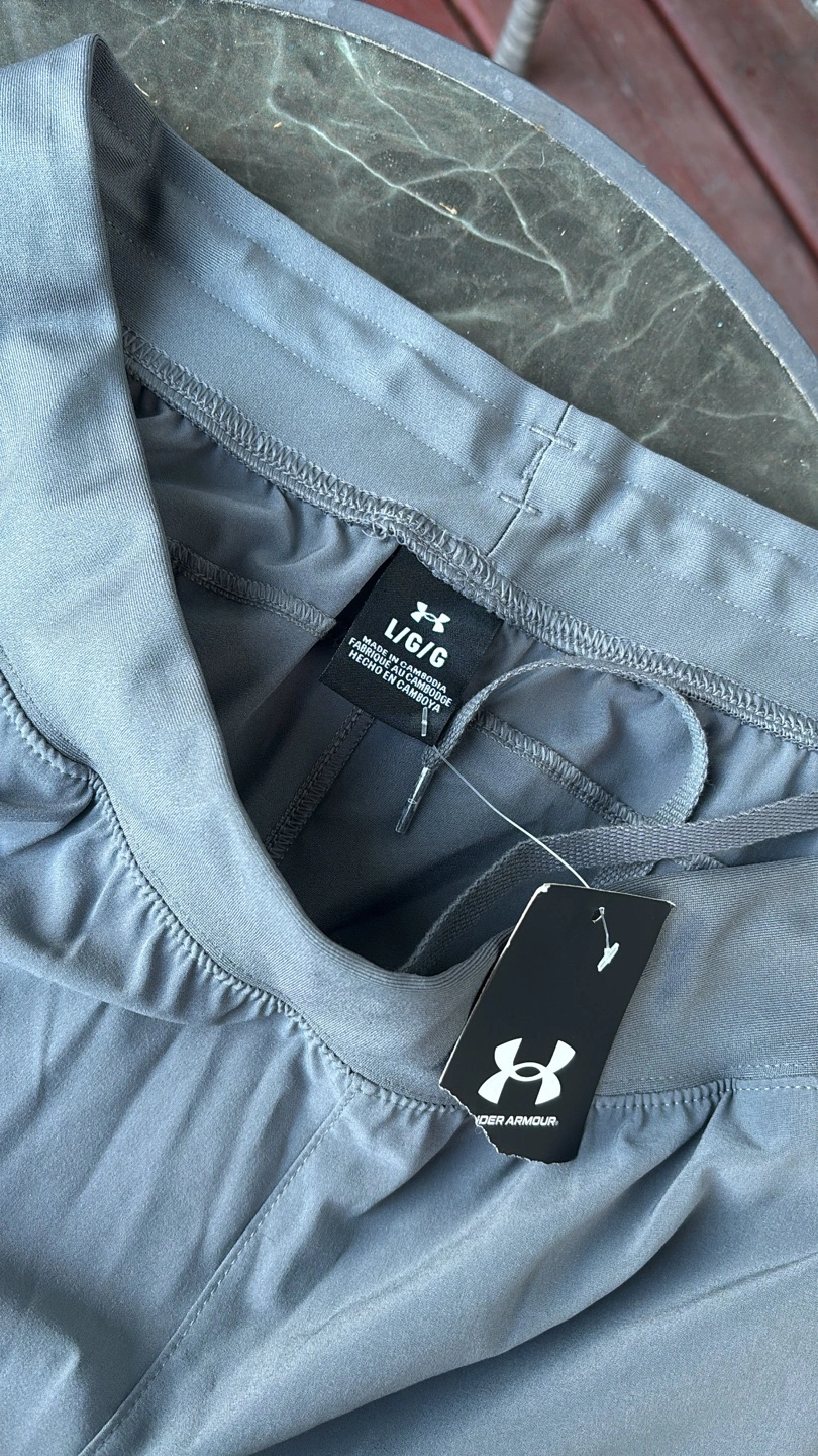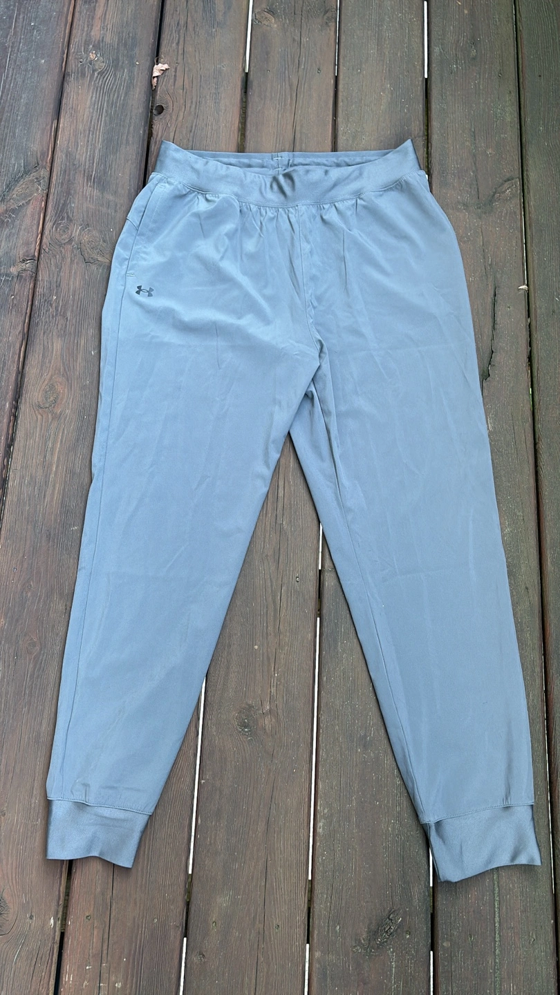 Selling a pair of Under Armour pants in size Large. They're made of 87% polyester and 13% elastane, making them super comfy for workouts or just lounging around