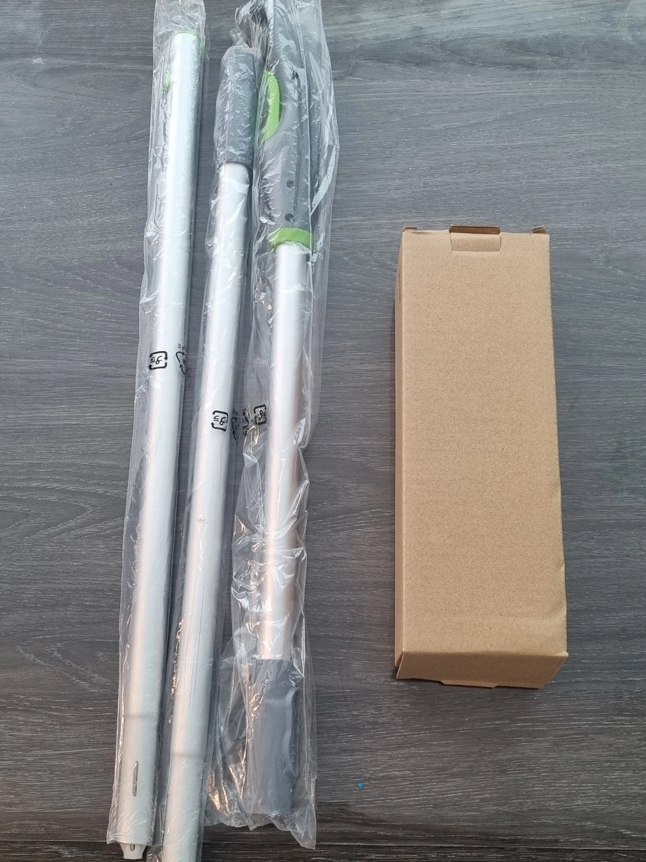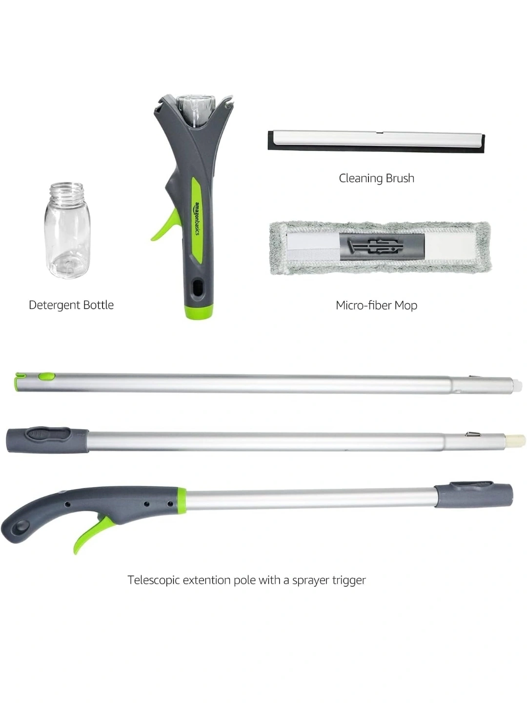 Selling an AmazonBasics window cleaning kit! It comes with everything you need to keep your windows sparkling. The kit includes: - A telescopic extension pole with a sprayer trigger - A cleaning brush - A micro-fiber mop - A detergent bottle It also comes with the original box. Amazon Basics Extendable Window Squeegee with Spray, Aluminum Extension Pole, 49 to 69 Inch.