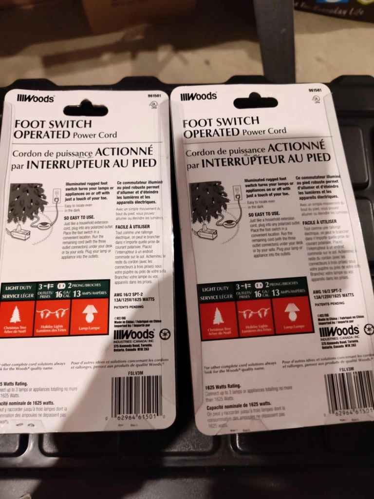 I'm selling a Woods foot switch operated power cord. It's super handy for turning lights or appliances on and off with just a tap of your foot. Easy to locate even in the dark! It comes in its original packaging