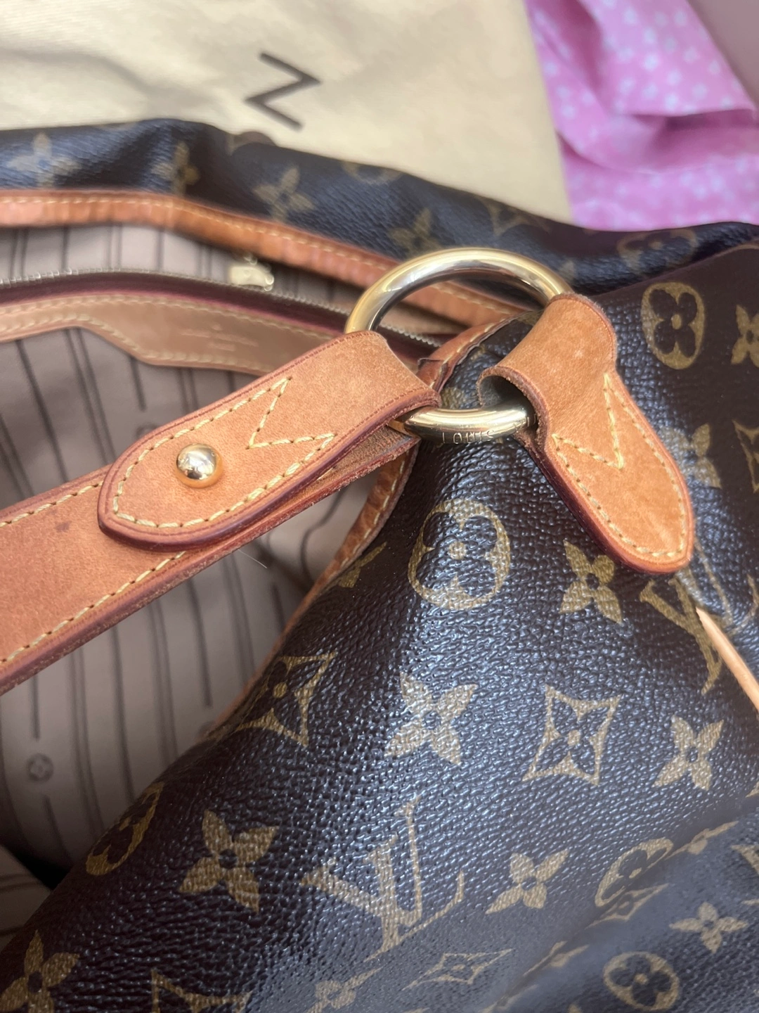 Selling a Louis Vuitton Delightful handbag colouration from age. features the classic brown monogram empreinte leather. Great for everyday use or as a stylish statement piece