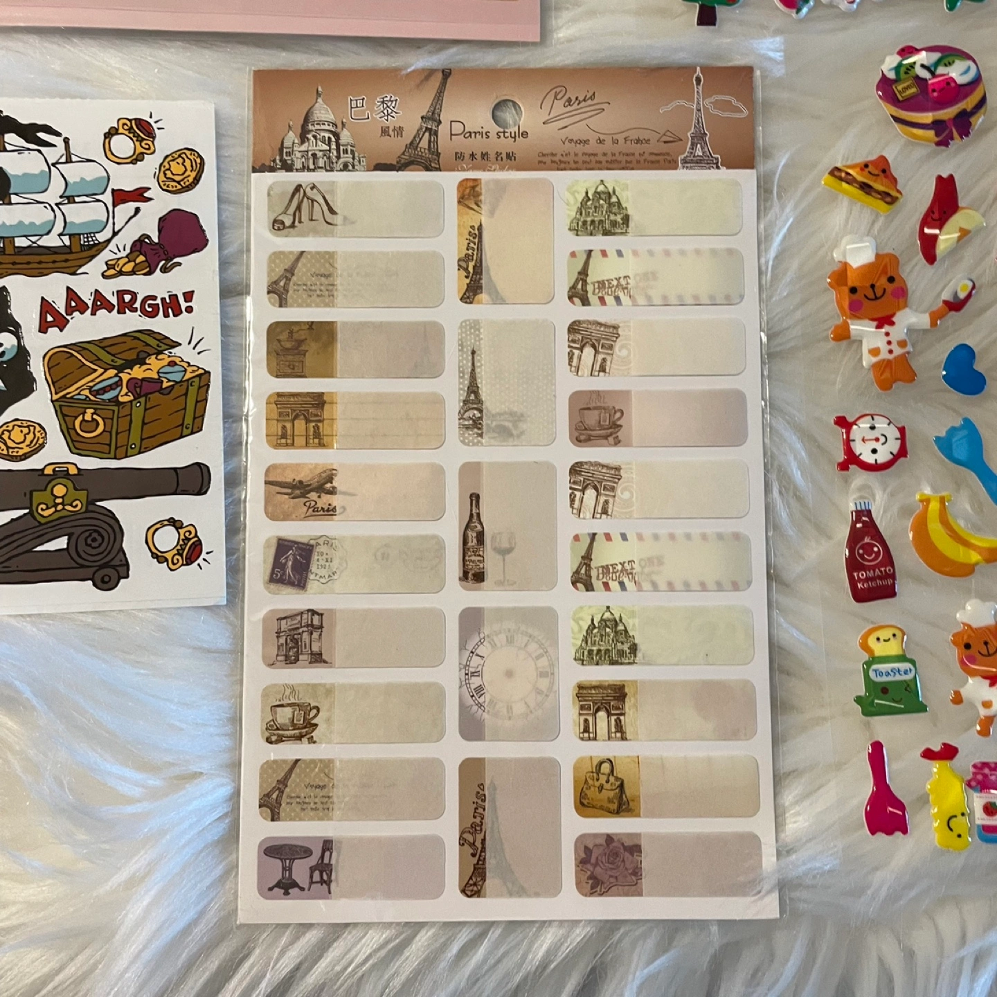 Selling a variety of sticker sheets! There's a Paris-themed sheet with cute illustrations, plus sheets with adorable animals and other fun designs. Perfect for decorating journals, cards, or anything else you can think of! Pick up: Suntea on Kingsway Royal Oak skytrain station Metrotown Mall