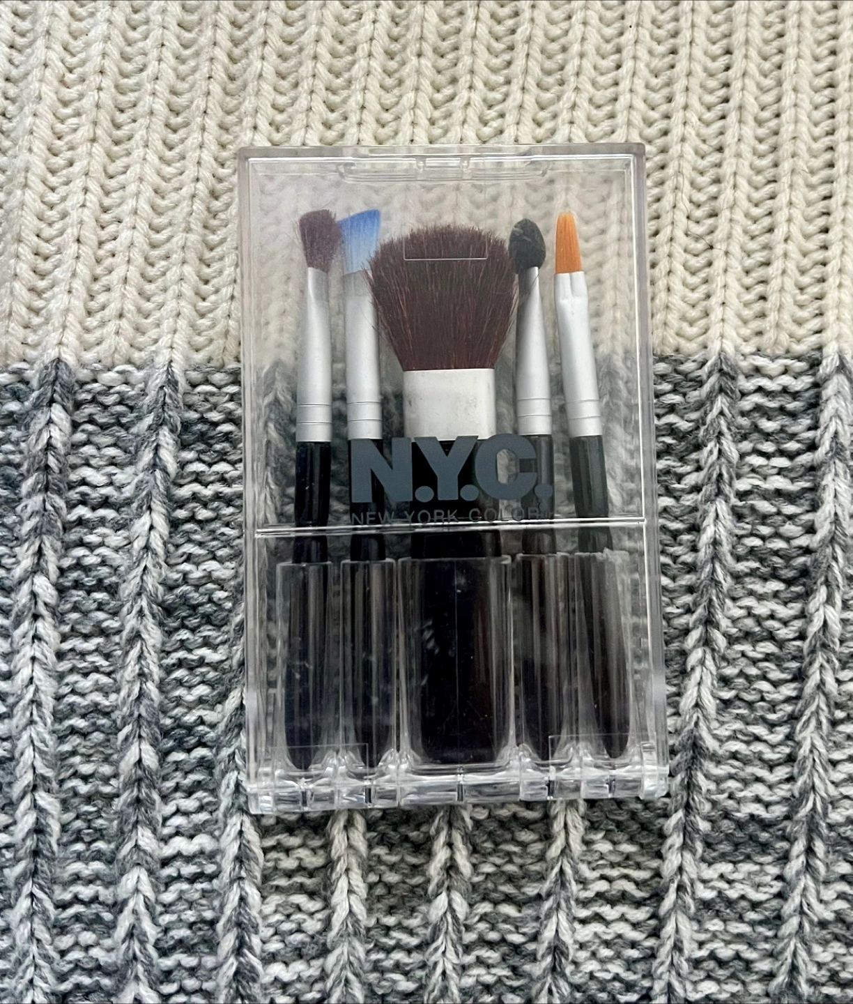 a brush set from NYC (New York Color) in a handy case. two sets of false eyelashes: one from Cooariposa and one from Dolly Wink. Perfect for completing your makeup kit! Some missing from each pack Lakeshore and parklawn Queen and ossington (some days) Open to trades