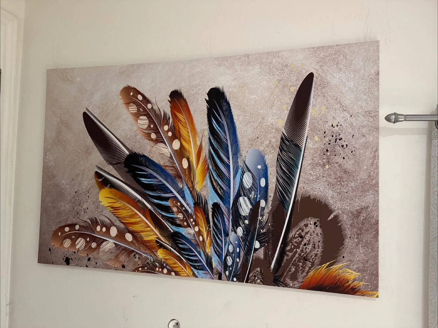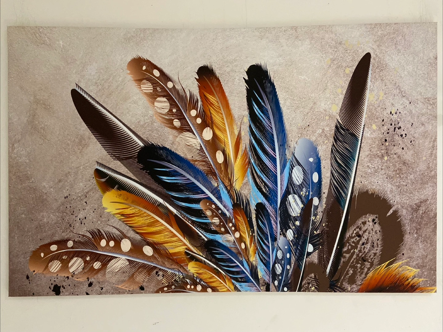 A beautiful feather wall art piece to add a touch of elegance to your home decor It features a variety of colourful feathers