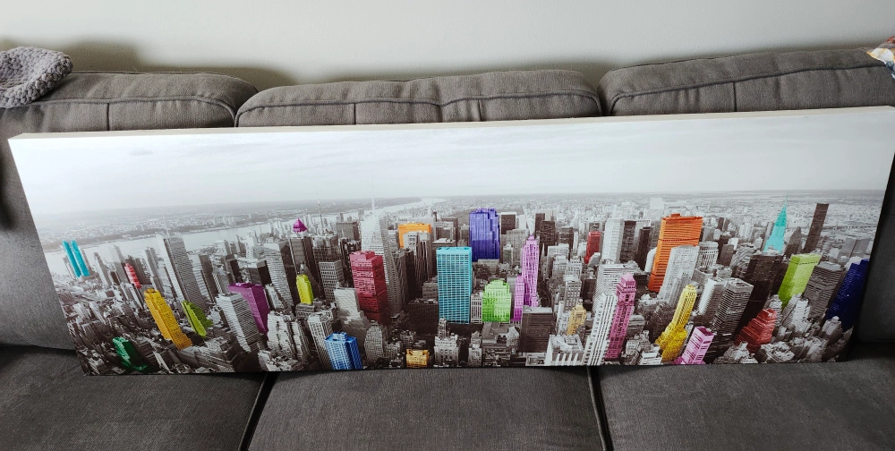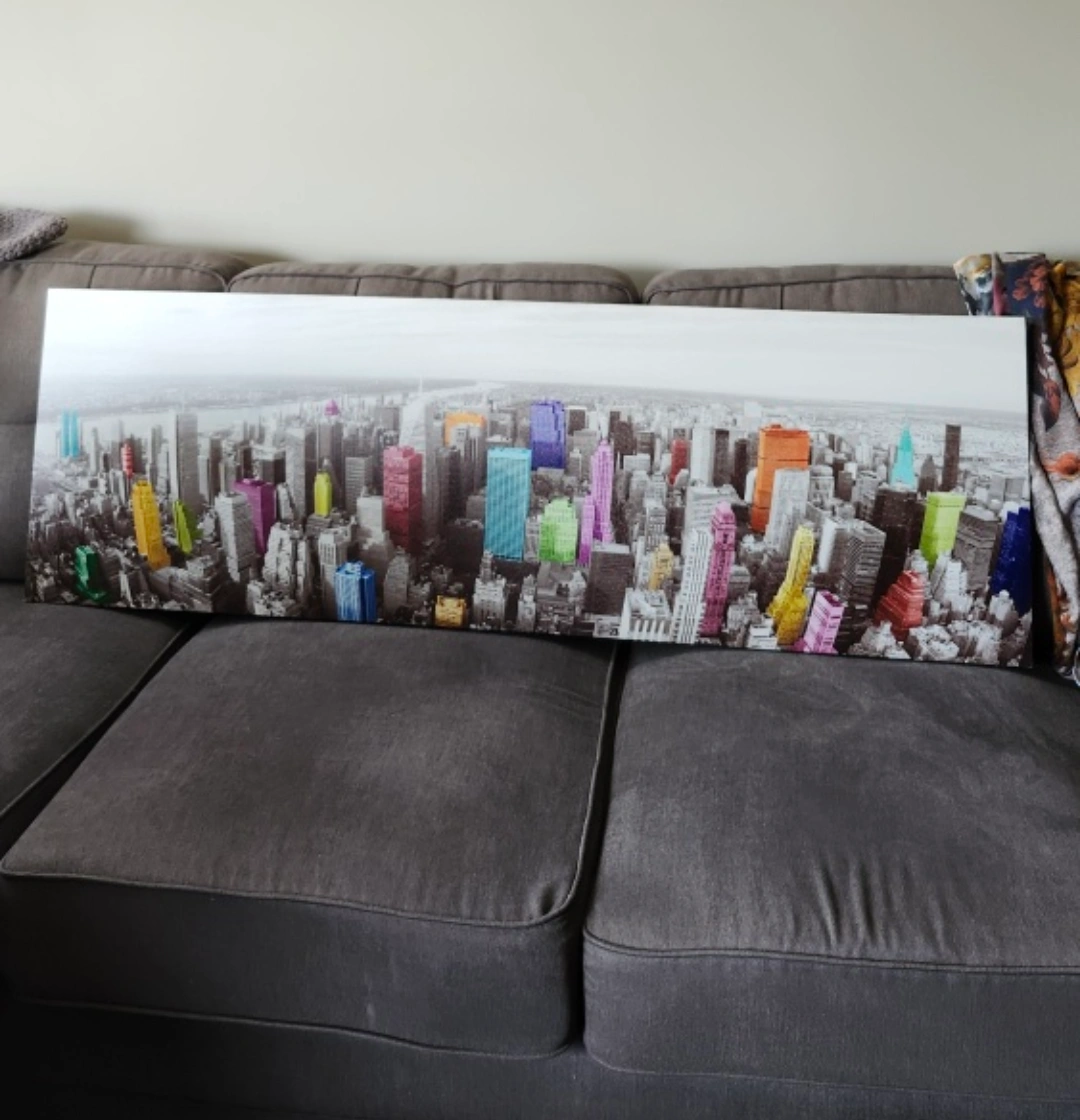 Beautiful skyline canvas print. Really adds colour to a room. Non-smoking no-pet home