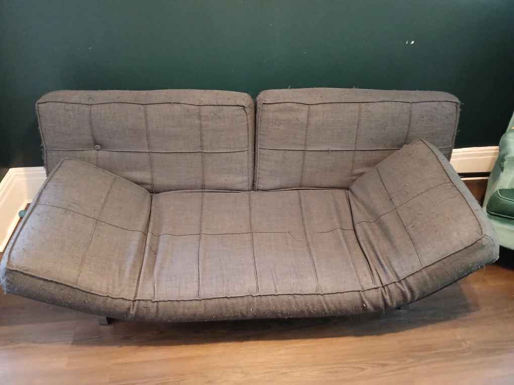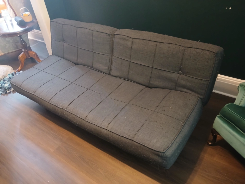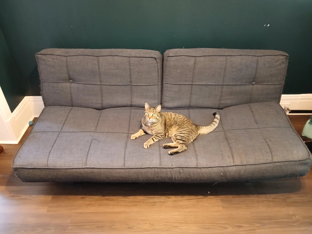 Parting with a futon. Had it for a good while in a smoke free home but quite a few... visible effects of cat ownership. Hoping someone can still put it to good use! Pick up only, near Condor & Baird Will bring down to the curb at pickup time Length: 77 in. Width: 33 in. (46 in. when opened in 'bed mode') Heigth from floor to seat: 14.5 in. Total Height in 'couch mode': 29.5 in.