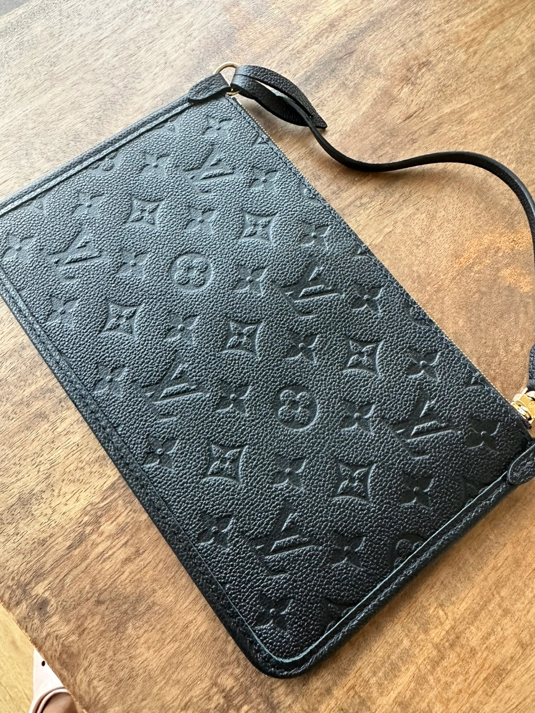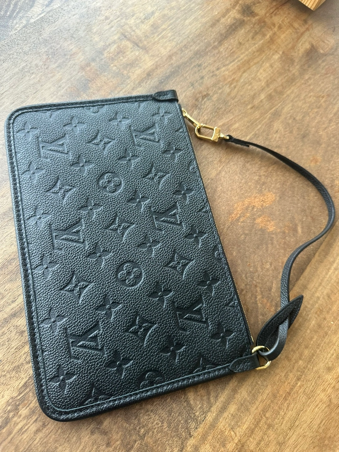 Authentic Louis Vuitton Monogram Pochette β originally came with the LV Carryall bag. Unused and stored in excellent condition with no signs of wear. Zipper works smoothly, interior is clean, and there are no stains, scratches, or scuffs. Perfect as a clutch, pouch, or bag organizer. Iconic monogram canvas with natural leather trim. Great for everyday use or travel. β Stored in a smoke-free home Black and sleek with midnight blue interior. I have proof of purchase of the carryall. π Beautiful quality and classic design β perfect gift or wardrobe staple. β¨ Feel free to message with questions or to make an offer!