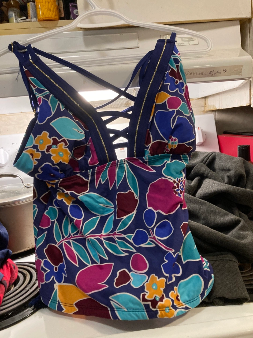 This women’s Tankini with bottoms features a vibrant floral pattern and a stylish lace-up back, perfect for your next beach day or poolside lounging. It's gently used and ready for a new home! This tankini is in good condition and has the following features: * Colourful floral print * Lace-up back detail * Comfortable fit * Includes both tankini top and matching bottoms Looking at similar listings on Kijiji, a reasonable price for this tankini would be $25. I think that's a great deal! Don't miss out—if you're seeing this ad, it's still available and waiting for you to make a splash!