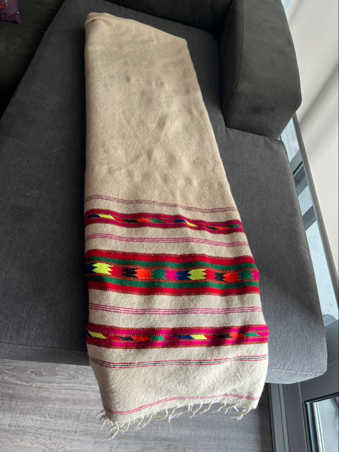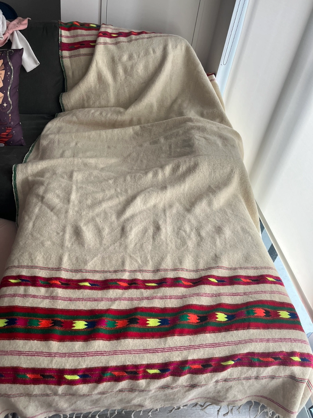 Selling a cozy premium wool blanket with a beautiful, colourful pattern on the edges. It's perfect for adding a touch of warmth and style to any room. It can also be used as a large shawl. The blanket is in great condition and ready to find a new home! Cash and pickup only, please.