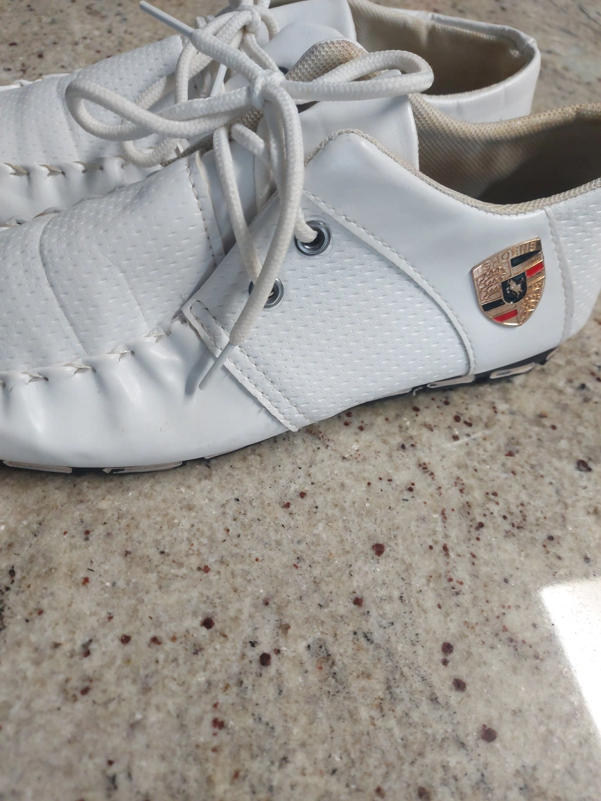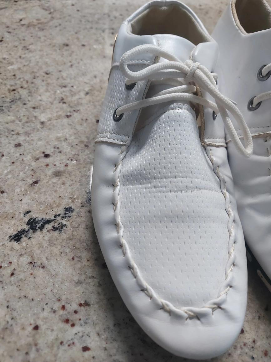 These white leather dress shoes are in good condition and ready for a new home! They feature a stylish design with lace-up closure and a comfortable fit. Perfect for dressing up or adding a touch of sophistication to your everyday look
