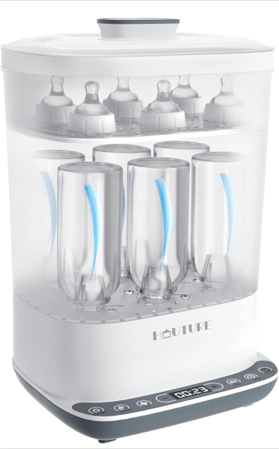 Brand: HAUTURE Baby Bottle Sterilizer, HAUTURE 6-in-1 Bottle Sterilizer and Dryer, Electric Steam Bottle Sanitizer for Baby stuffs, Baby Bottles & Breast Pump Accessories It features: - Storage - Sterilize - Dry - Auto