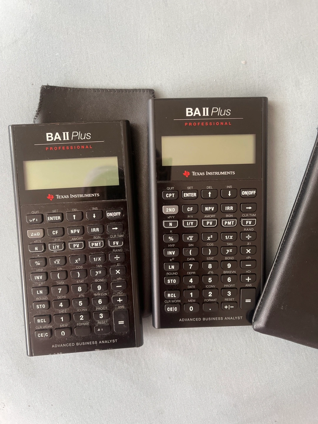 Selling two Texas Instruments BA II Plus Professional calculators. They're both in great shape and ready to help you ace your finance exams! Perfect for business students or anyone needing a reliable financial calculator