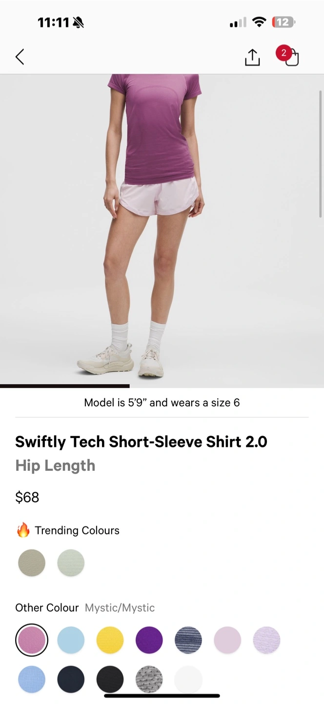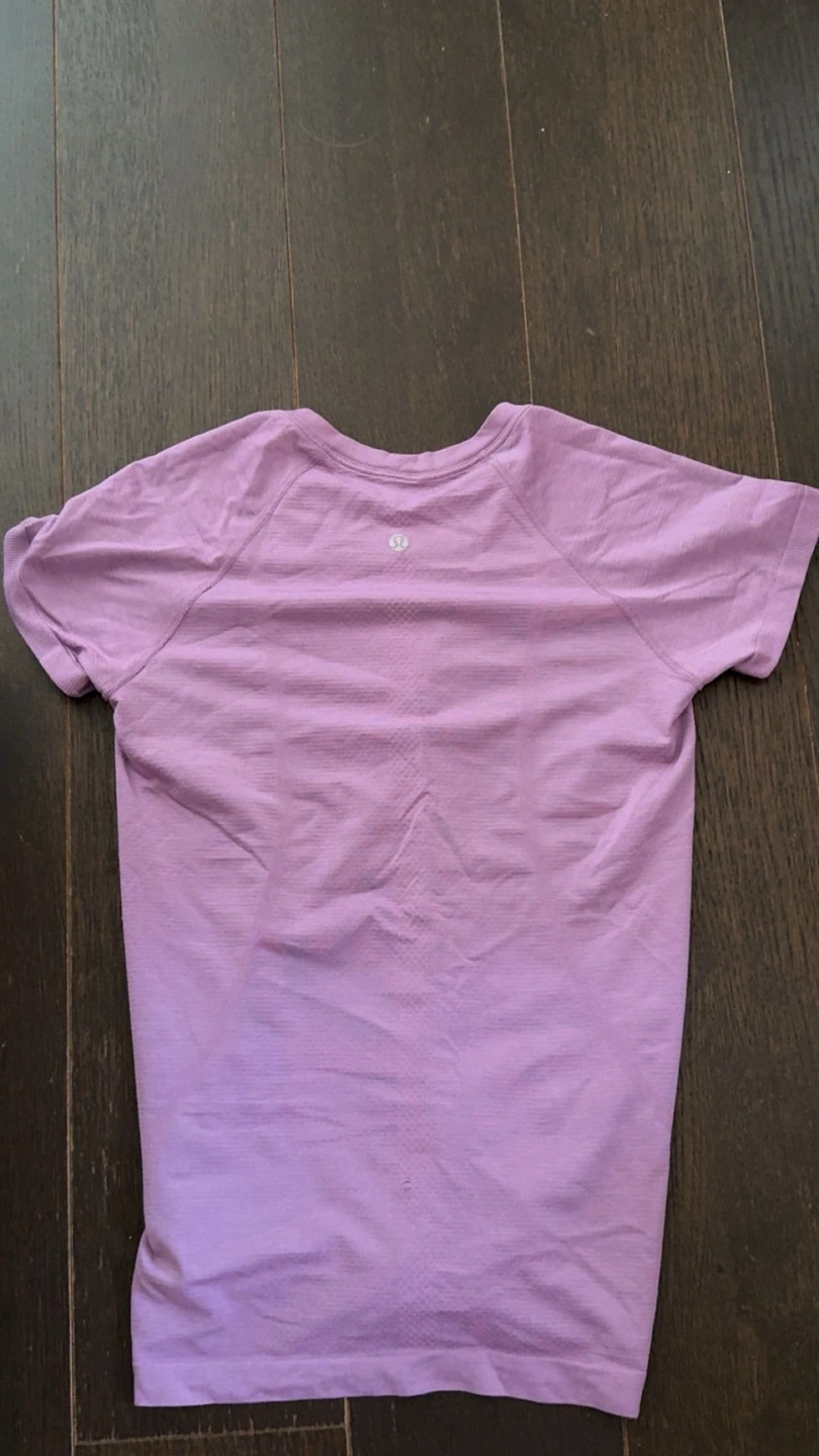 Selling a Lululemon Swiftly Tech Short-Sleeve Shirt 2.0 Not sure if the size but it fits for a small (baggy fit like in the model) so I believe it’s either a size 6 or 4 The shirt is a lovely purple colour. It's a hip-length style, perfect for workouts or casual wear. Originally goes for $68+ tax I’m asking for $35 Has a slight rip on the bottom because of my cat.