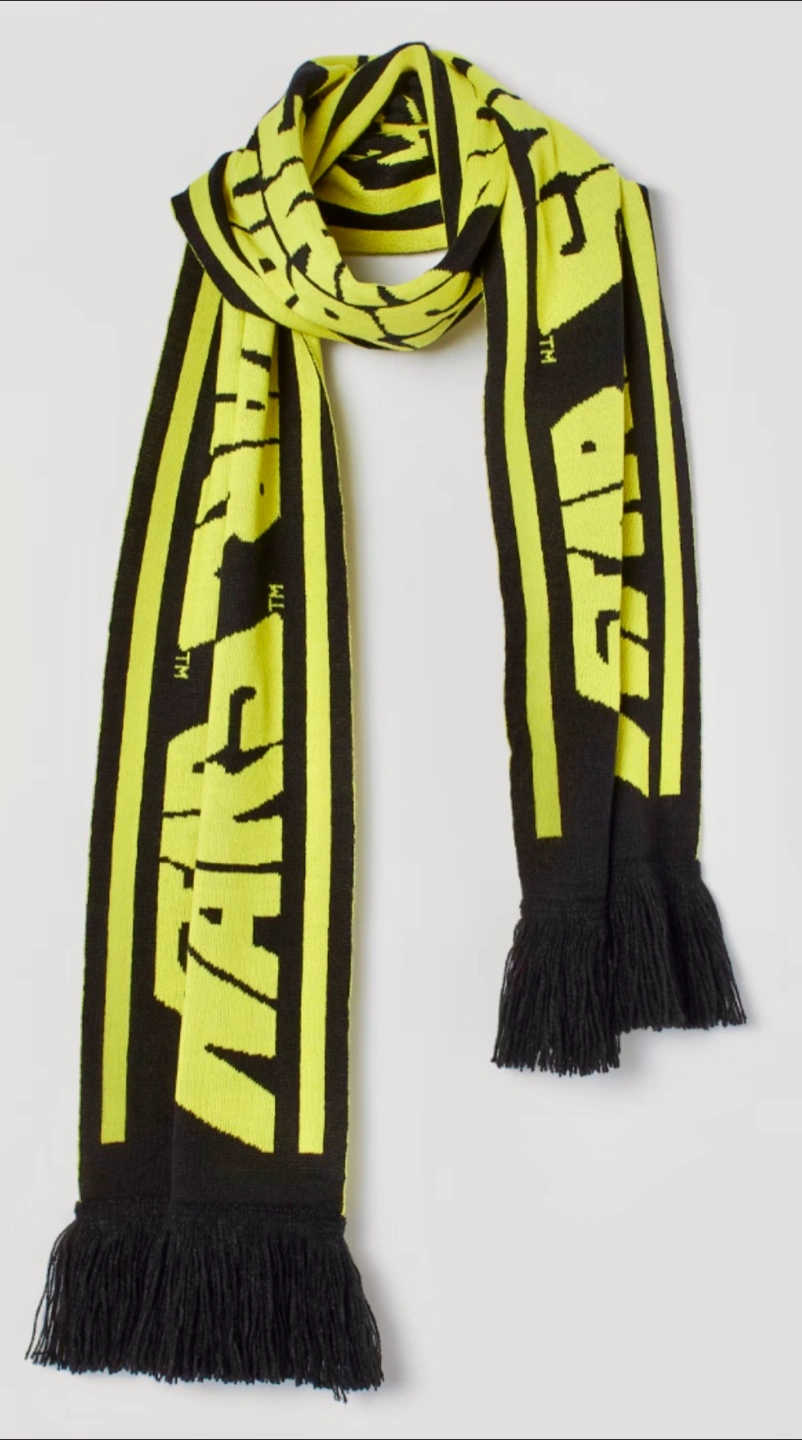 Wrap yourself in the galaxy far, far away with this H&M Jacquard-Knit Star Wars Scarf. A must-have for any Star Wars enthusiast, the scarf features iconic imagery from the beloved franchise, crafted into a cozy and durable knit fabric that's perfect for any fan event or casual wear. This scarf is not just a collector's item but a functional accessory suitable for any Star Wars fan. It showcases the intricate design and attention to detail that H&M is known for, making it a standout piece in any wardrobe . Whether you're updating the contents of your closet or adding to your memorabilia, this scarf is an excellent choice for showcasing your fandom. Measures 71 inches by 10 inches. 100% acrylic. Brand new with tags from a pet free, smoke free home.