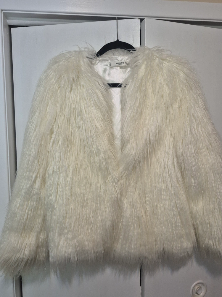 Selling a super cute Mango Casual faux fur jacket in white! It's a size XS and would be perfect for adding a touch of glam to any outfit. It's in great condition and ready for a new home