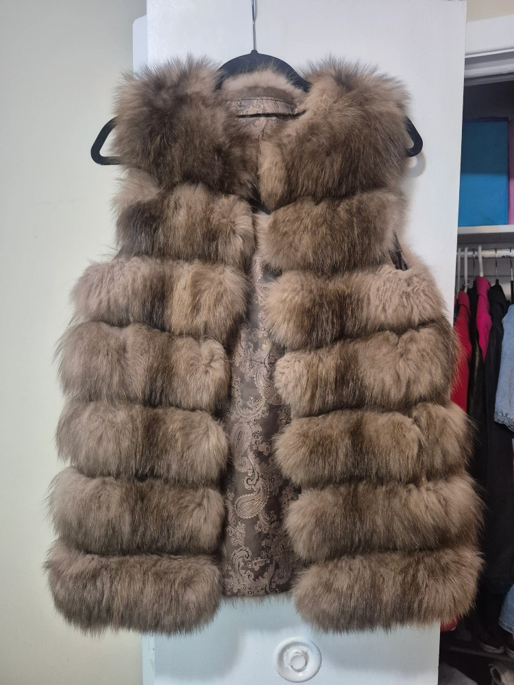 A lovely fur vest, perfect for adding a touch of warmth and style to any outfit! The interior lining features a beautiful paisley pattern